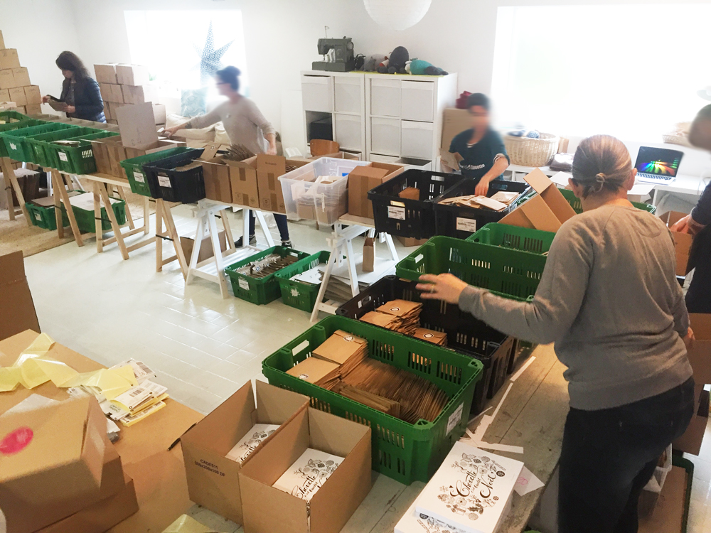 Approche alors doucement le moment de l’emballage, les réserves se remplissent, on s’organise avec nos amis les postiers pour qu’ils nous réservent tous leurs camions jaunes pour le D-Day, et le jour prévu, l’atelier se transforme en un truc mi-ruche mi-usine-Taylor. En 4 ans, nous avons beaucoup progressé sur cette phase et, même si en la matière nous sommes complètement auto-didactes, il y a des vrais process bien rodés, des contrôles qualités et notre taux d’erreur est très très faible. C’est une de nos grandes fiertés.