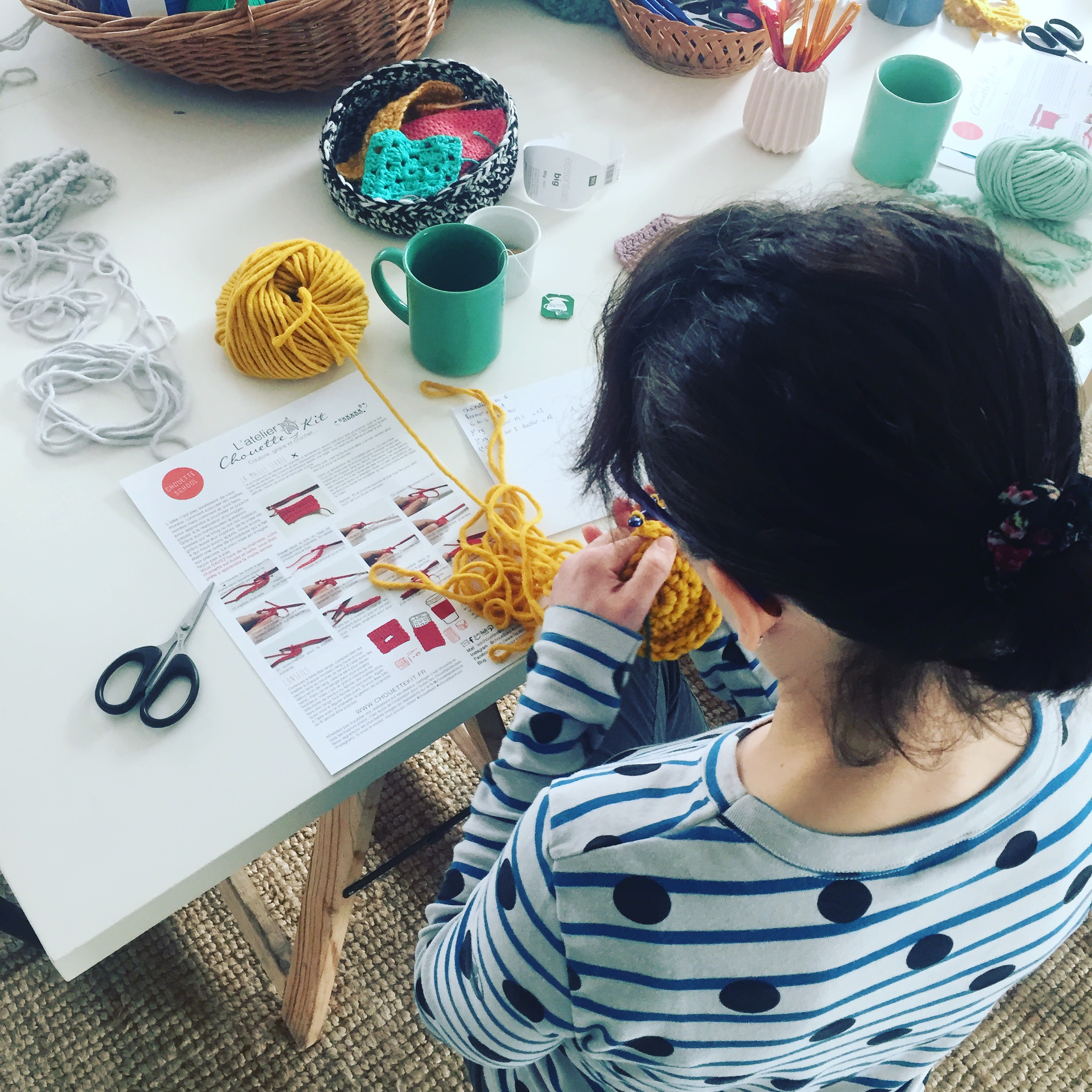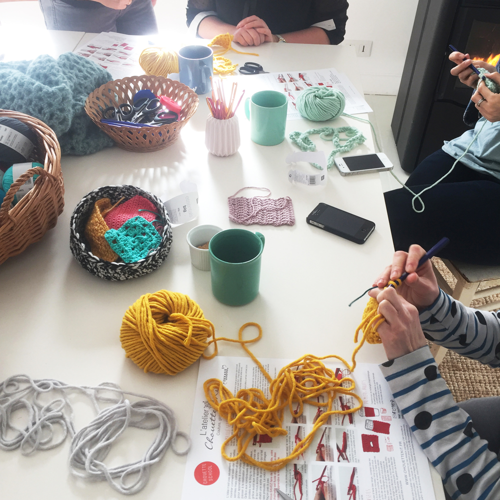 Ensuite nous voulons aussi garder de l’énergie pour développer la Chouette School qui nous tient aussi beaucoup à cœur. La Chouette School, c’est notre retour dans « la vraie vie » avec des ateliers pour apprendre le crochet (bientôt d’autres techniques aussi) avec une vraie prof dans une ambiance sympa. Il n’a pas été facile de dégager du temps pour la lancer mais comme toujours chez Chouette Kit nous avons utilisé nos deux atouts : le travail « step by step » et le réseau de copines. Nous avons commencé petit, en tâtonnant, à l’atelier le samedi matin à Guidel et dans une petite librairie de Versailles, avec comme prof nos super copines. La proximité et la confiance nous ont permis d’avoir des retours d’expérience rapides et efficaces, de progresser sur la méthode et les projets. Nous allons commencer à être prêtes à ouvrir la Chouette School sur d’autres villes. C’est le deuxième grand projet 2017.