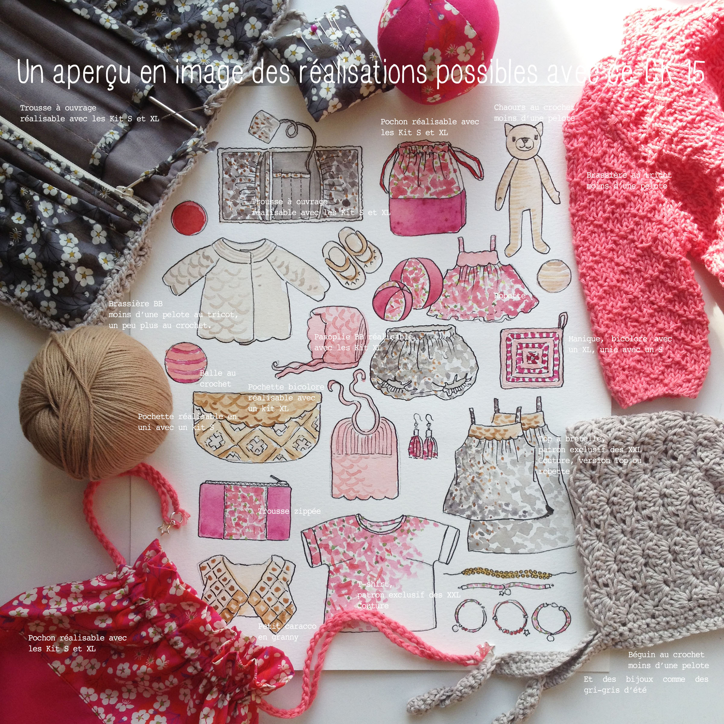 Des Kits XXL couture, qui sont un peu la nouveauté de cette édition puisqu’ils contiennent 1 mètre de tissu Liberty et un vrai patron pour se lancer dans projet de vêtement adulte!