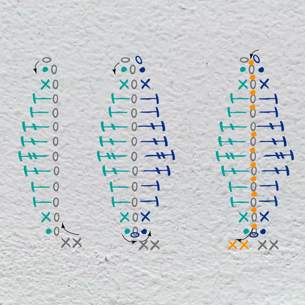 1 – Pour que ce soit joli, à vous d’improviser le rythme des feuilles, tantôt seules, tantôt deux ou trois très rapprochées.
