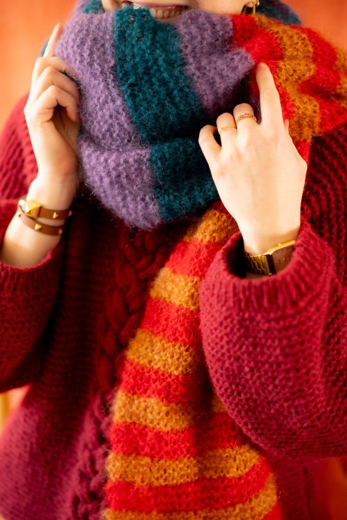 Chaque kit contient tous les matériaux nécessaires (pelotes, tissu et éventuels accessoires de mercerie) ainsi qu’un tutoriel détaillé pour réussir la réalisation.