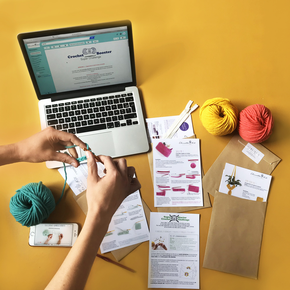 For each new session we create a new, private Facebook group, for the class group only. It’s run by one of our “Super Chouette” crochet experts (in English of course). She’ll be available to advise you and help you overcome any difficulty. You’ll be able to post photos, ask questions, and get personalised answers from the group and/or the expert. The lively group dynamics will help you to reach your goals week after week.