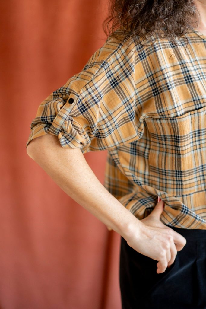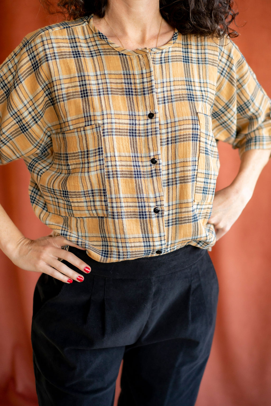 A la une 1, 2, 3 Noël – Kit Couture – Blouse Simone double-gaze réversible à carreaux