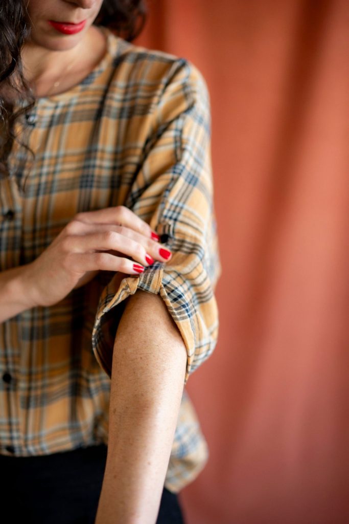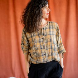 La blouse Simone a été imaginée pour être facile et rapide à monter : peu de pièces à assembler et aucune technique compliquée. Seules les boutonnières peuvent faire peur, mais elles ne sont pas obligatoires ! Un vrai projet “easy” !