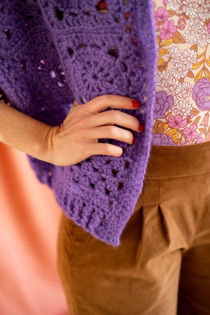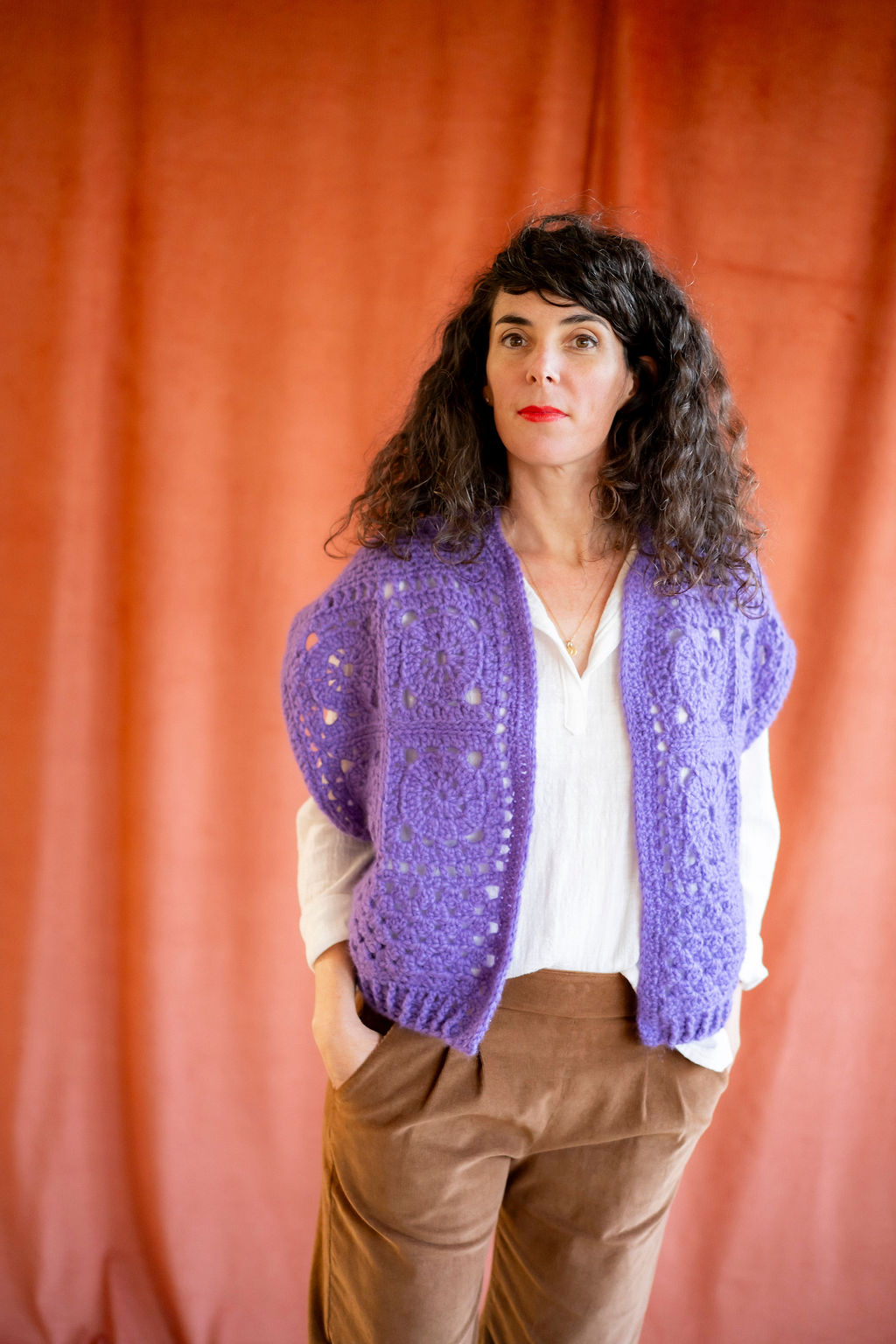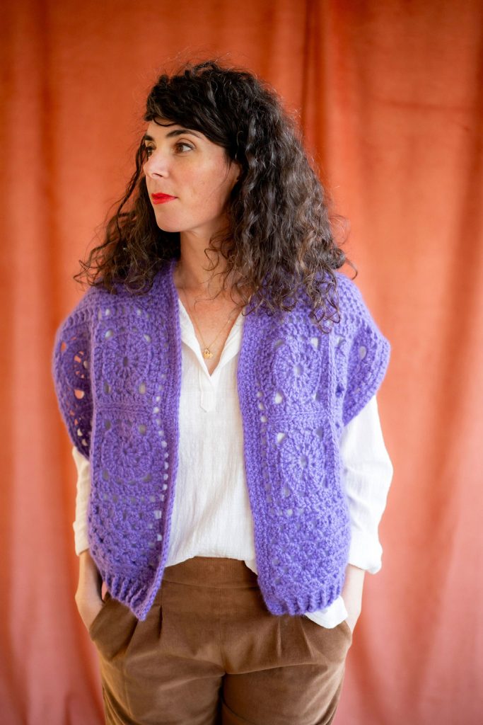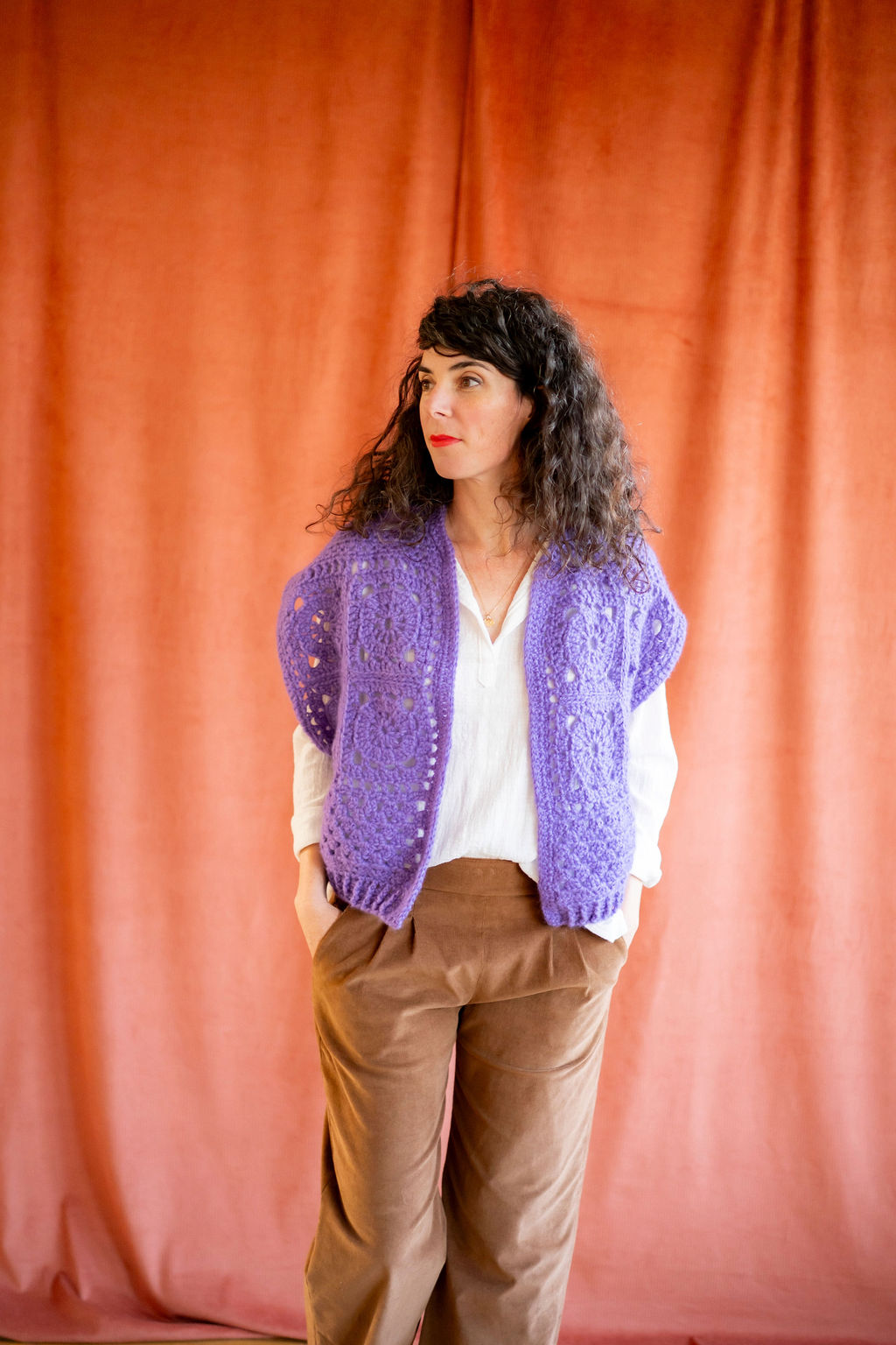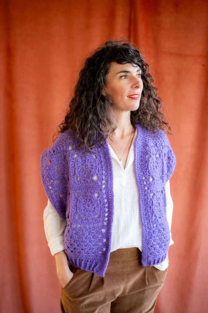C’est un gilet un peu spectaculaire qui combine plusieurs points et des grannies : LE projet dont on avait envie cet hiver et que l’on a adoré développer dans cette superbe laine à la fois épaisse et légère.