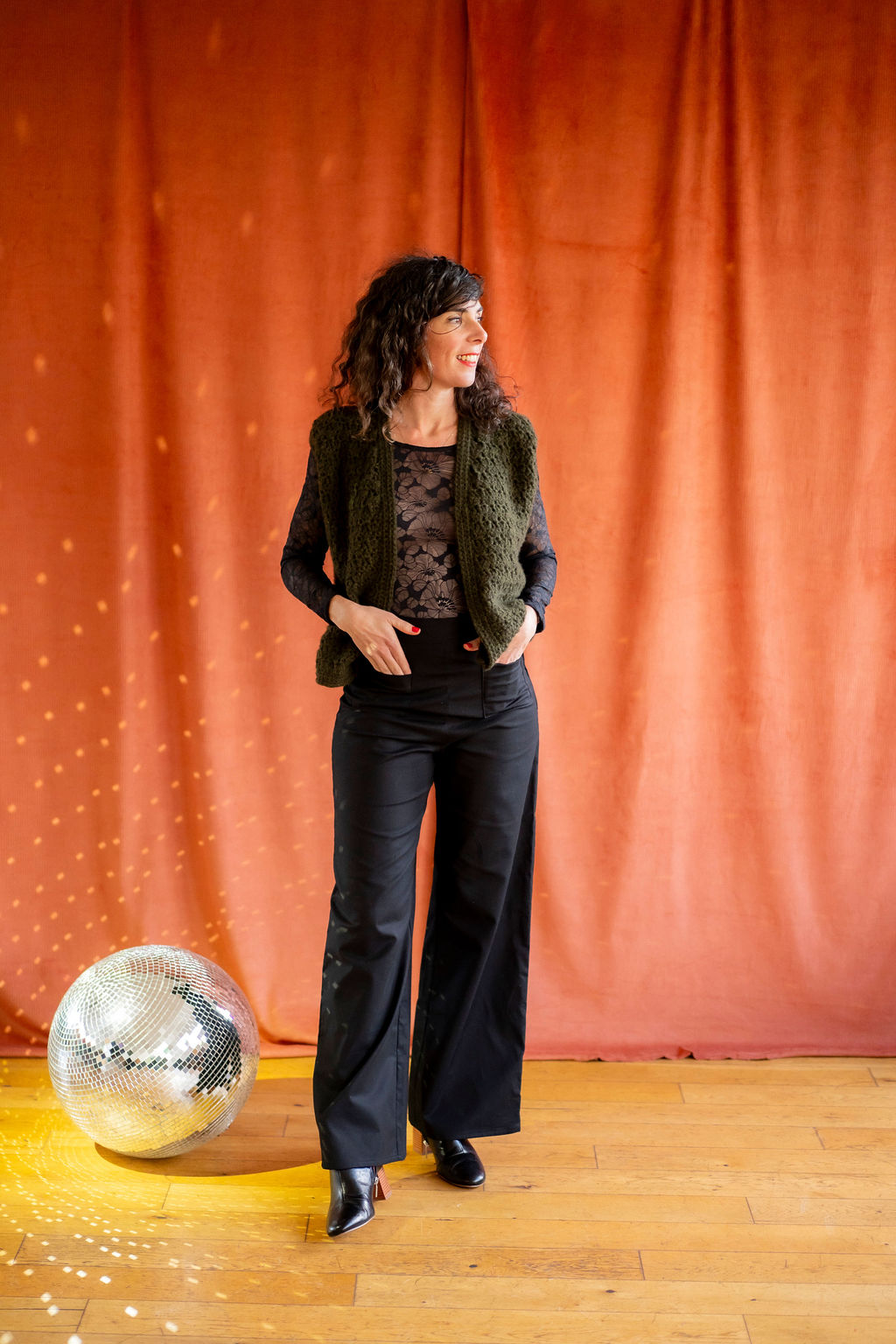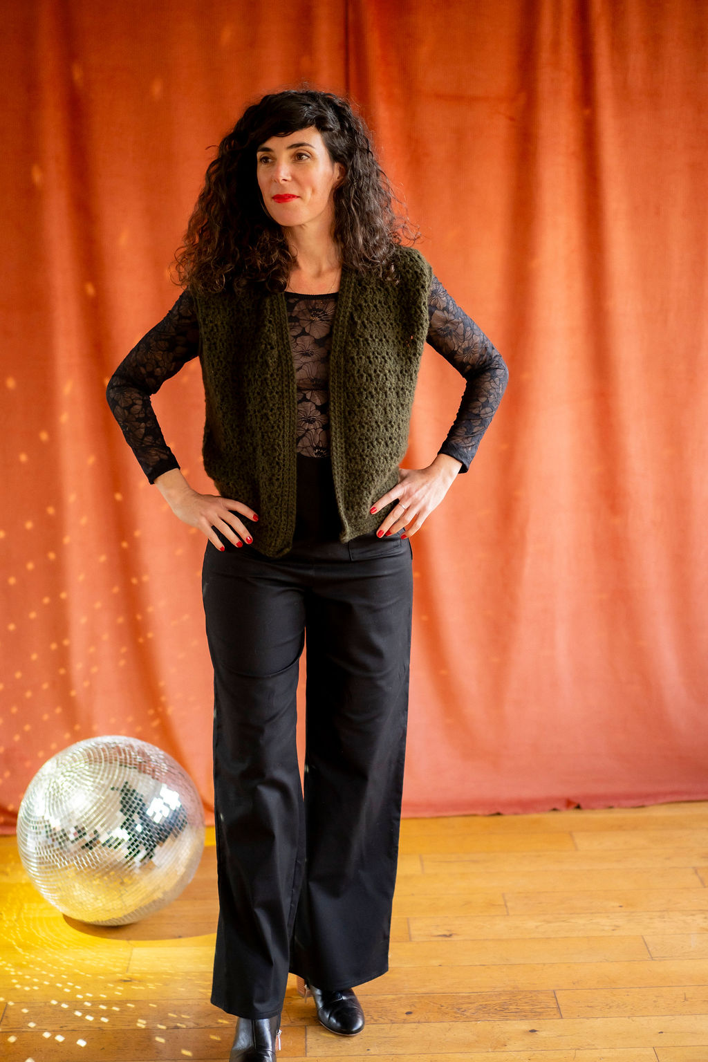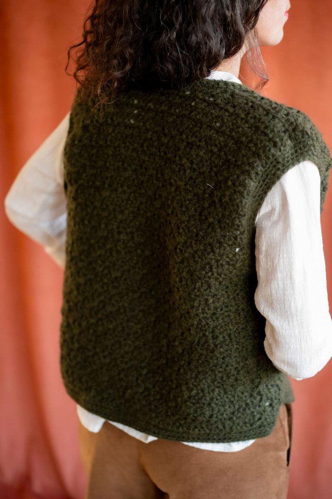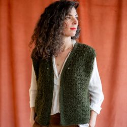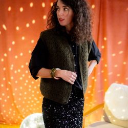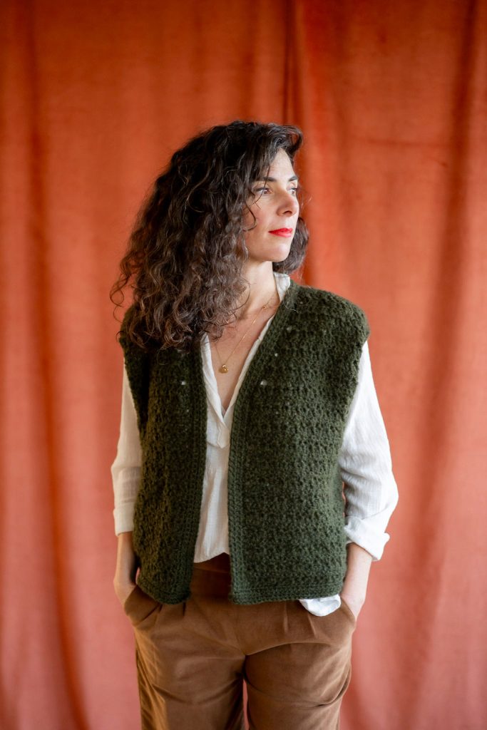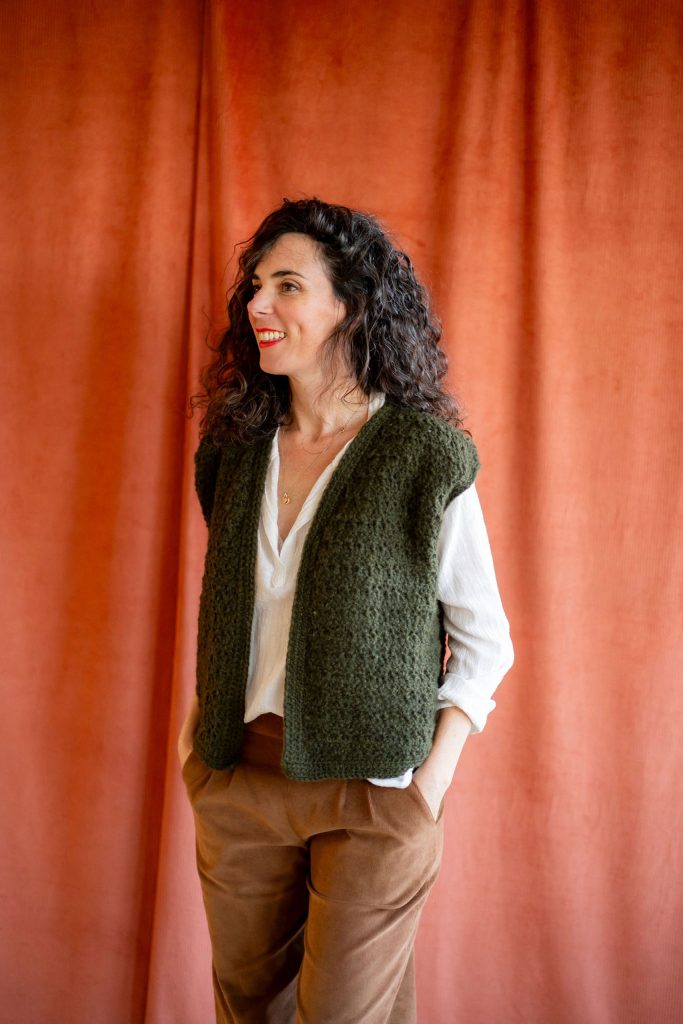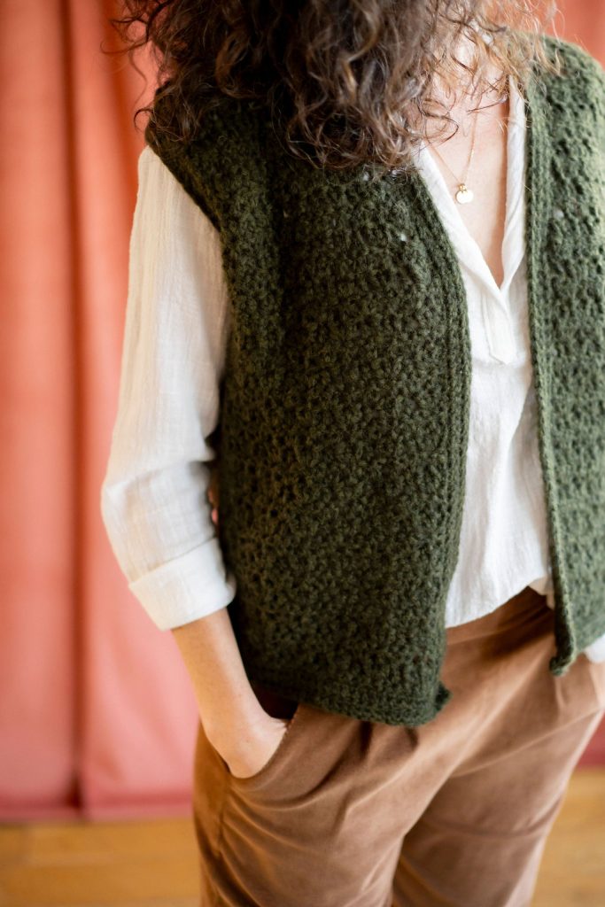 Un gilet facile et rapide à réaliser, plus près du corps que le gilet Basile, il se glisse facilement sous un manteau ou une veste. Une forme classique de gilet sans manches à porter sur une chemise, un pull fin ou un tee-shirt à manches longues, parfait pour réchauffer une tenue.