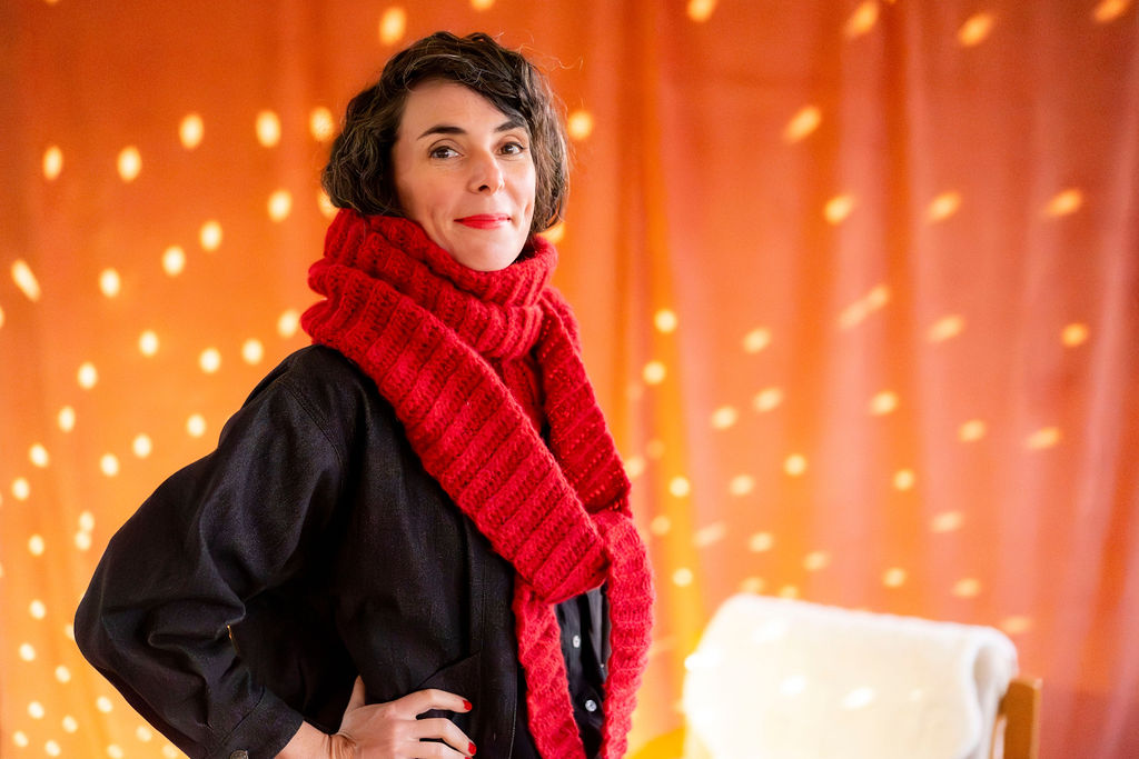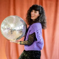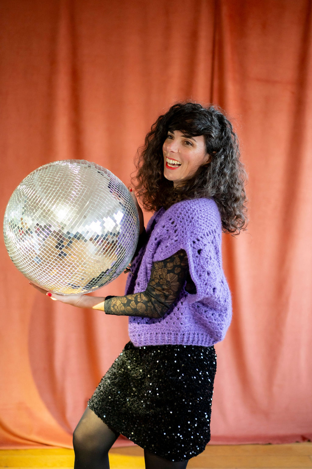 Pour la taille 40 / 42 compter 2,5 pelotes. Notre modèle Johanna porte cette taille, en oversize sur les photos et elle porte habituellement du 38