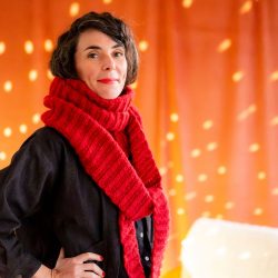 En bonus “chute” : le bonnet à côtes Damian – 150 m de fil : Ce bonnet à revers est un bonheur à porter car il est très doux et bien chaud. Il nécessite moins d’1 pelote et peut aller aussi bien aux femmes qu’aux hommes. Le point utilisé est bien élastique et donne beaucoup de souplesse et de confort à ce bonnet. C’est un projet facile et accessible après un Starter.