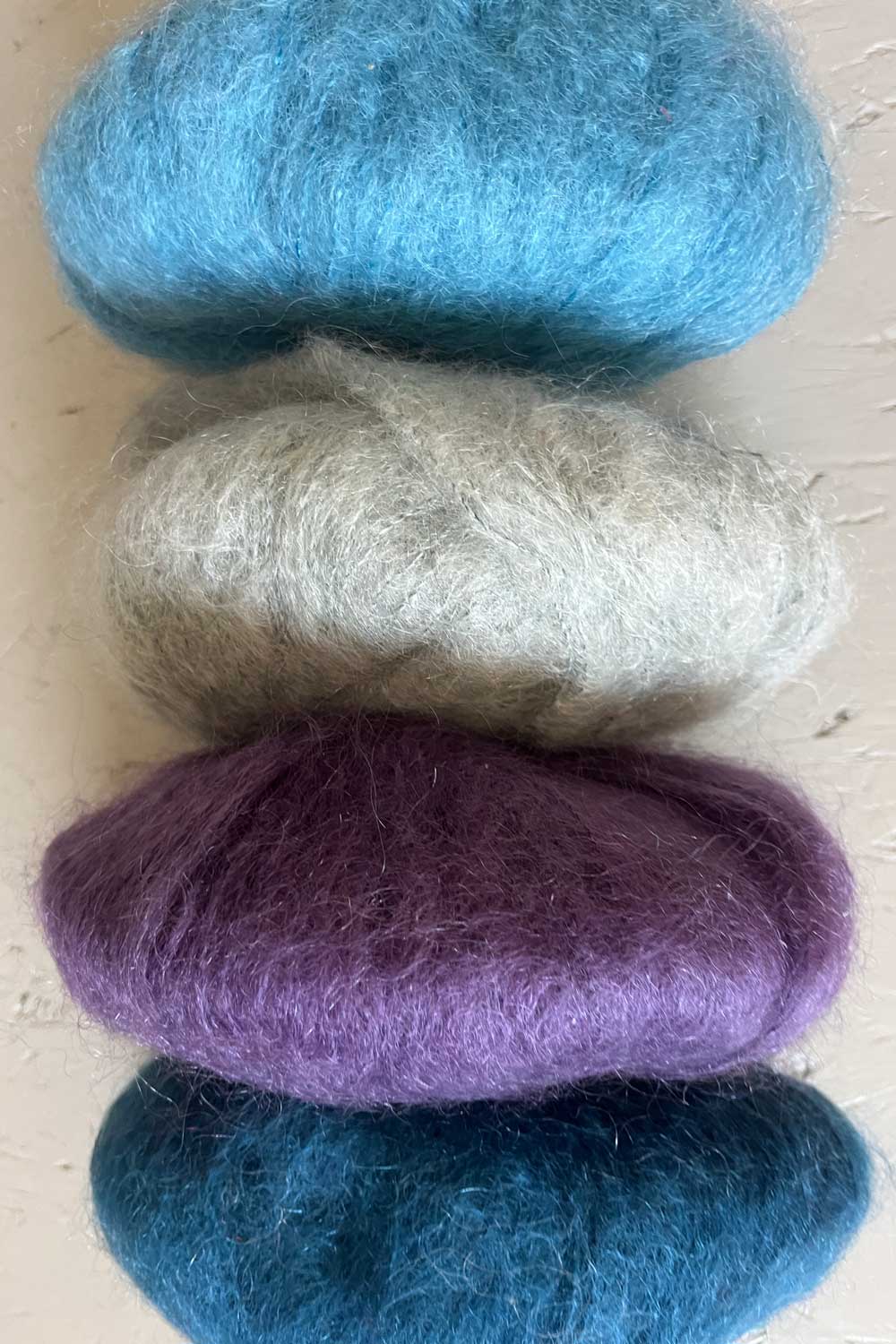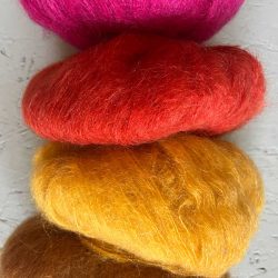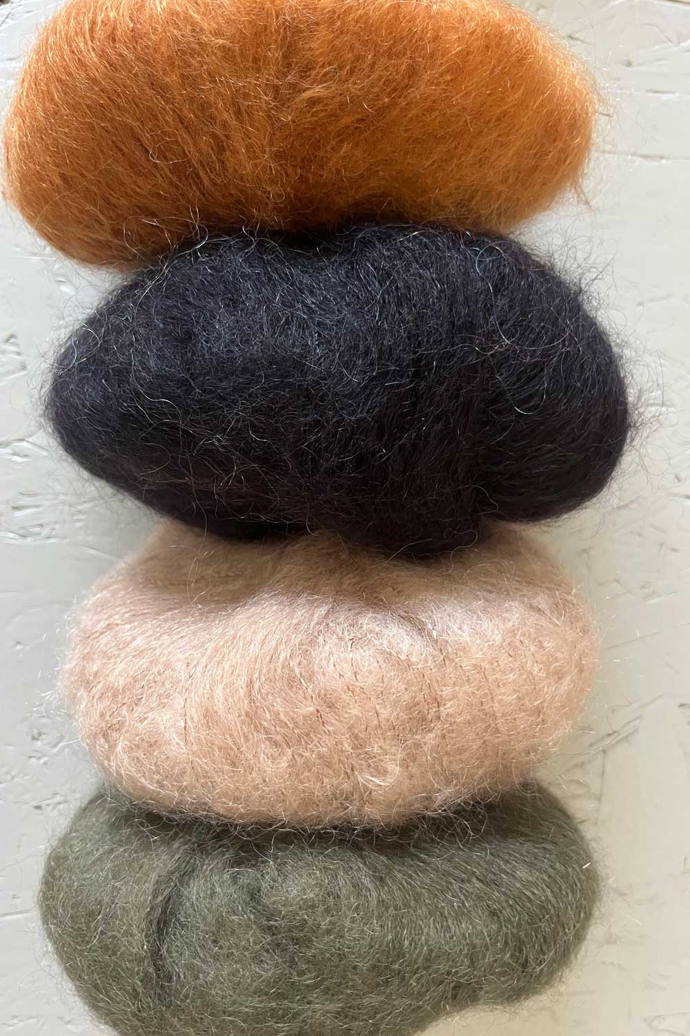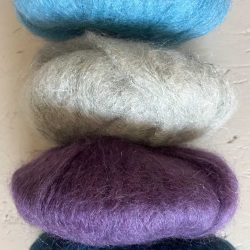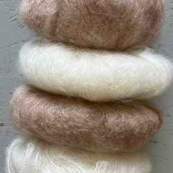 Ce fil est un de nos fils chouchou depuis longtemps. Nous l’utilisons très régulièrement pour les écharpes, pointes, capuches et pulls car c’est un des mohairs les plus doux que nous connaissons, et qu’il se tient bien dans le temps.