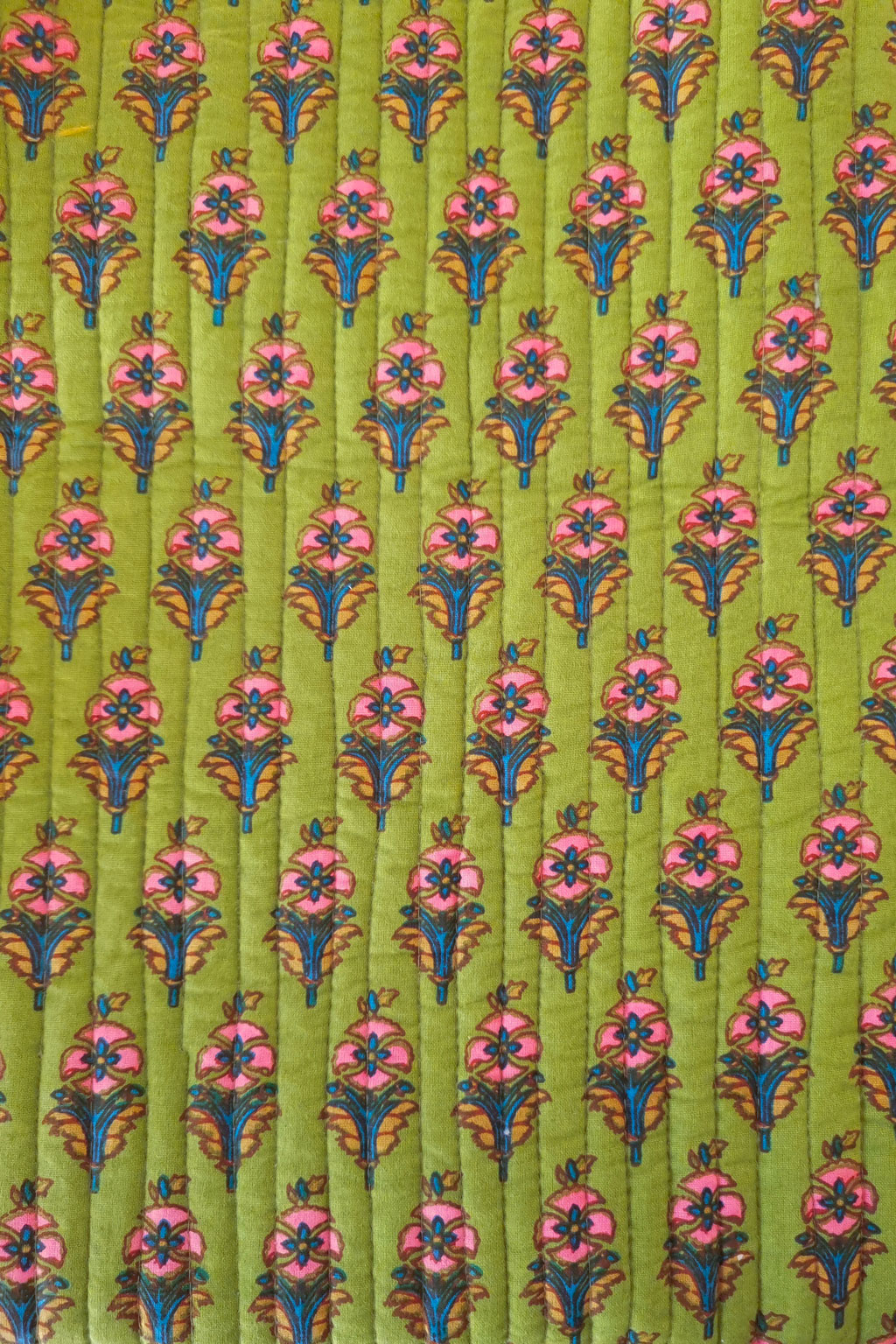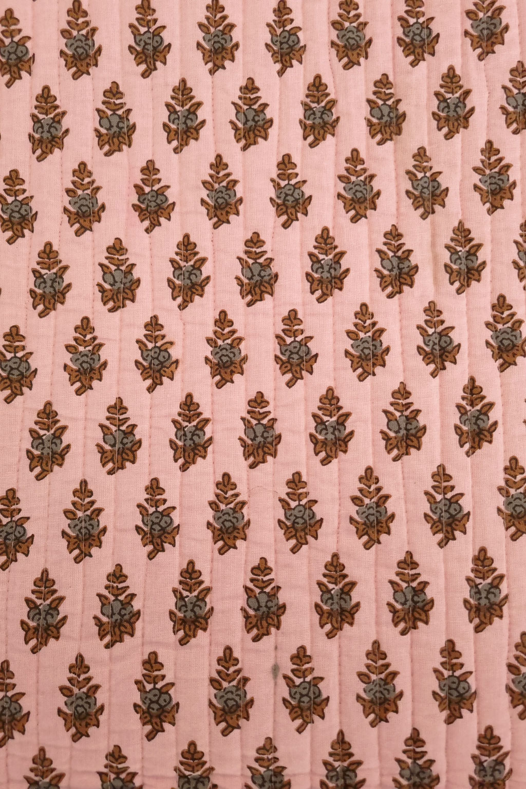 Notez que les tissus indiens sont fabriqués artisanalement selon la méthode du blockprint, des irrégularités peuvent apparaître sans que cela ne soit un défaut.