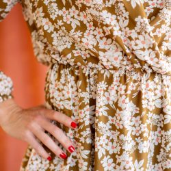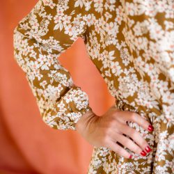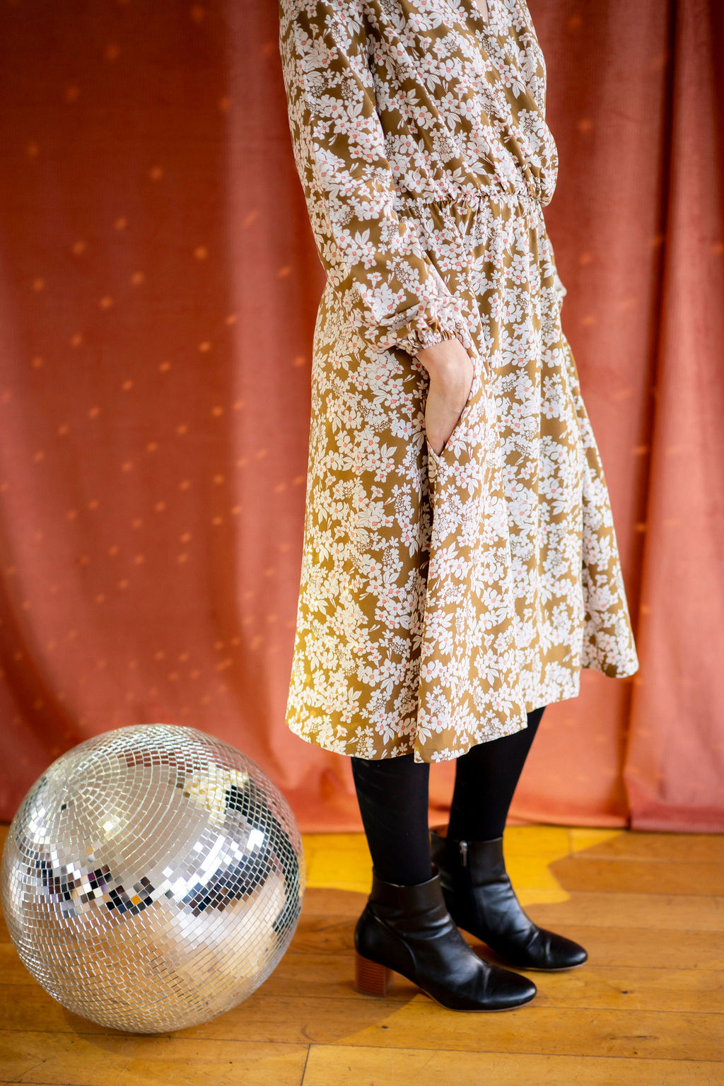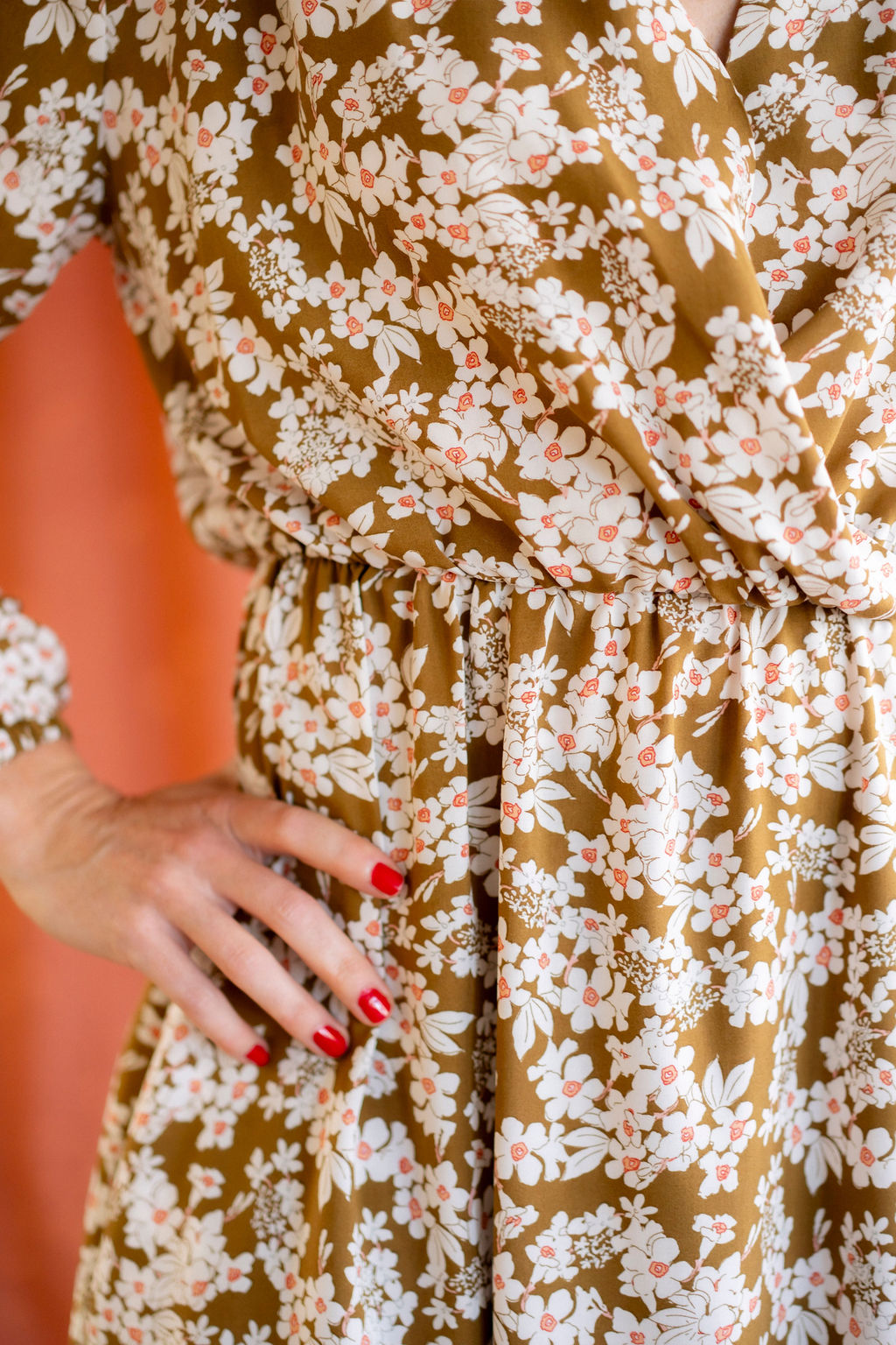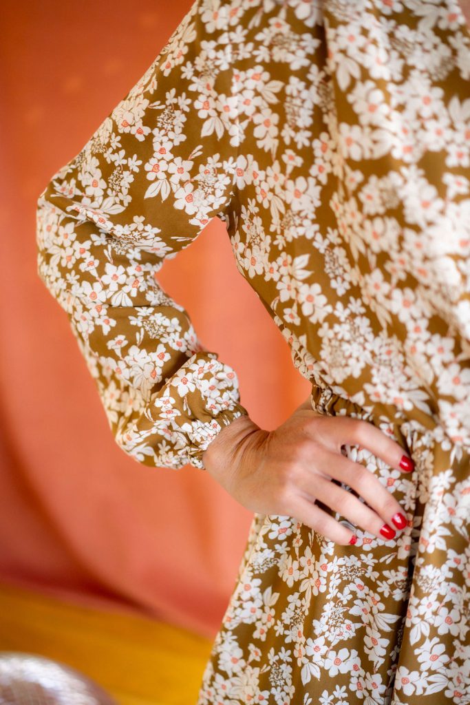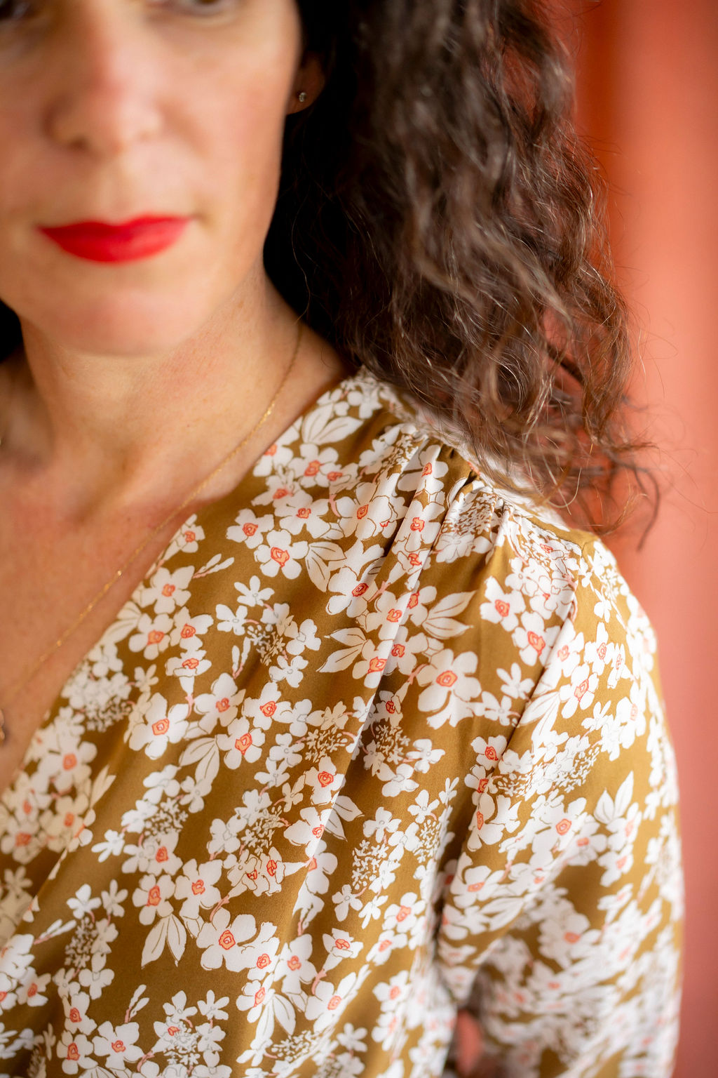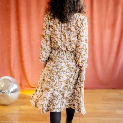 La robe Elena version corsage simple est très facile à monter, et la version corsage croisé a été pensée pour se coudre aisément également. La viscose est fluide et nécessite de bien épingler ou bâtir à chaque étape.