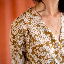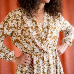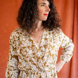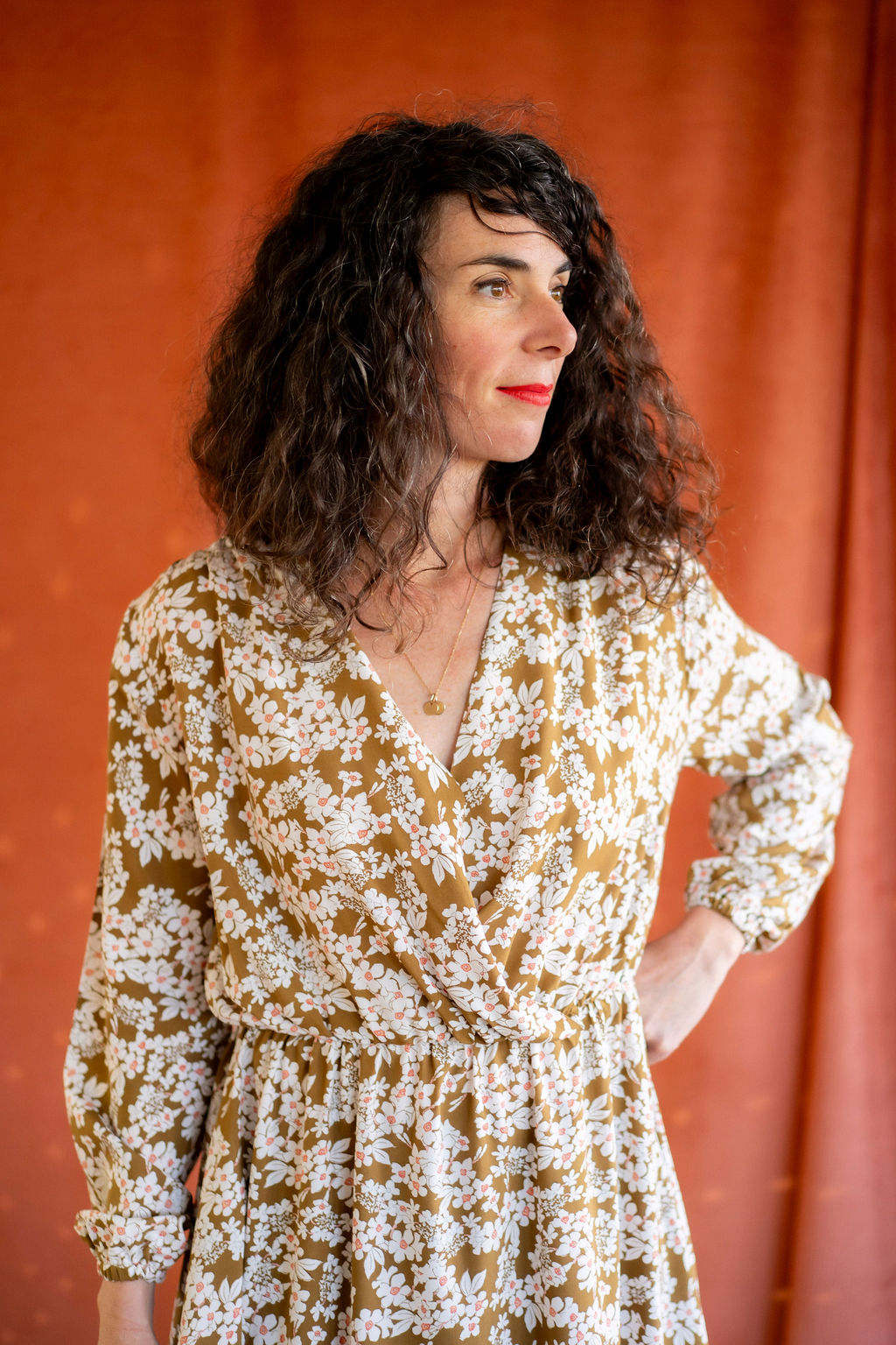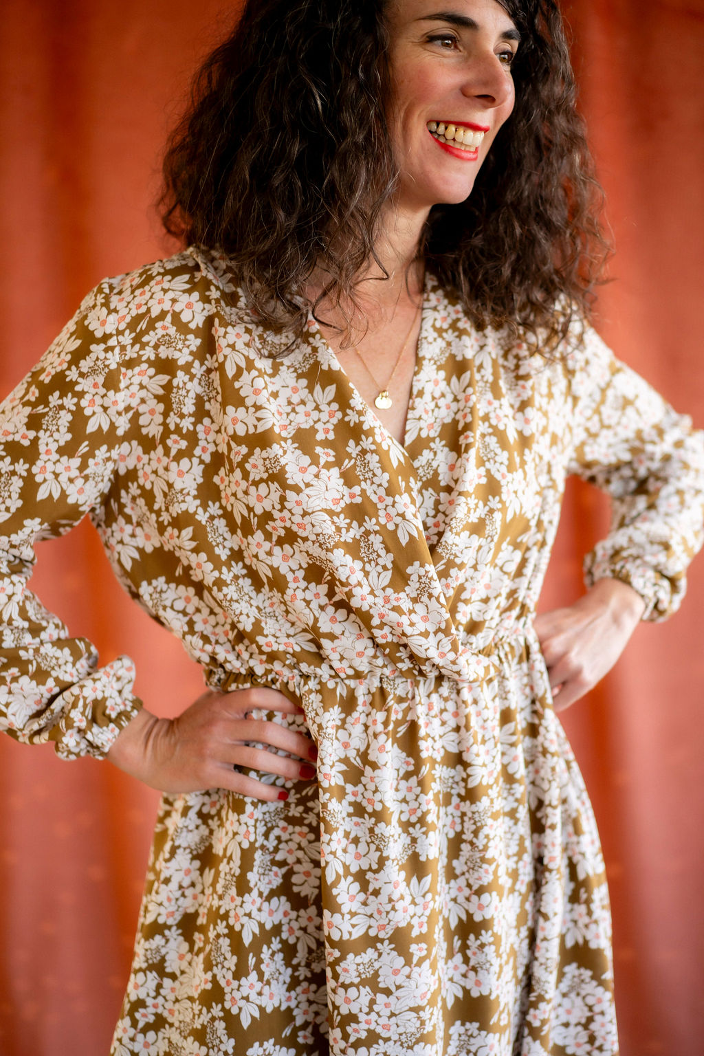 Voici un modèle de robe mettant en valeur le plus grand nombre de morphologies : nous avons donc choisi deux corsages différents, s’adaptant sur la même jupe. Un corsage croisé, froncé aux épaules, ultra féminin et élégant, et un corsage plus simple mais tout aussi délicat avec son encolure bateau et ses bras ajustés. Si ce dernier rend le modèle très simple et rapide à monter, la version croisée a été conçue pour être facile également à réaliser. Cette robe aux multiples allures possibles, tantôt décontractée, tantôt chic, sera parfaite en de nombreuses occasions.