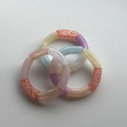 Pour ces lots de perles, nous vous proposons 5 assortiments couleurs et vous pourrez faire 3 bracelets de 6 ou 7 perles. La norme est à 6 perles mais chez nous on aime aussi avoir un peu d’aisance et 7 perles, c’est plus confort pour certaines.