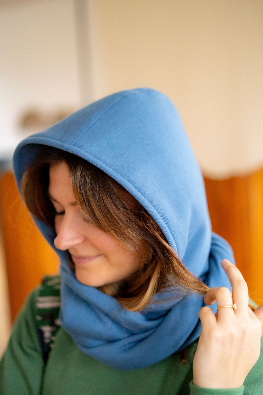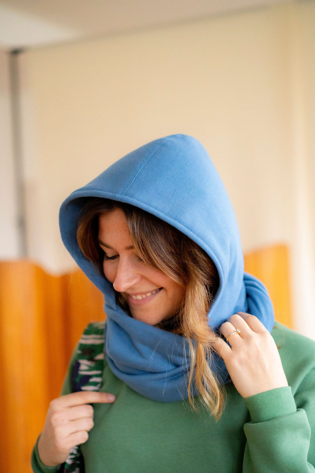 La capuche Aliocha protège la tête et forme un col double autour du cou, assurant chaleur et douceur quand les températures exigent de se couvrir. C’est l’alternative pratique au combo bonnet/écharpe, entre autre pour les personnes ne supportant pas la laine, et avec style !