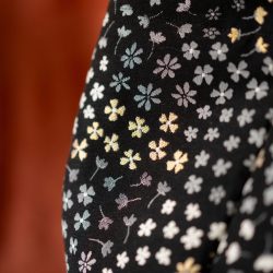 - 1 coupon de tissu pour la doublure lamé or – 50 cm x laize – 95% coton 5% polyester Oeko Tex® pour le motif Fleurettes gold