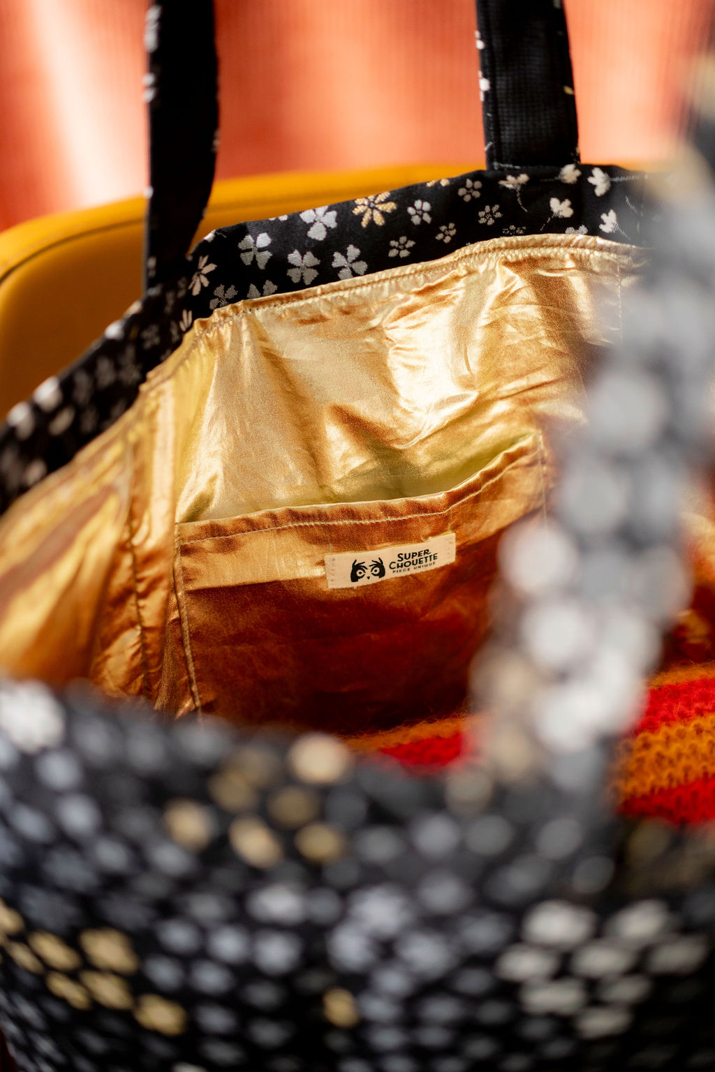Deux nouveaux jacquards aux motifs floraux agrémentés de touches or viennent rejoindre notre collection de Giant bag ! Parfaits en cette saison !