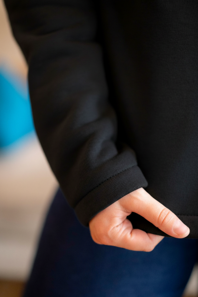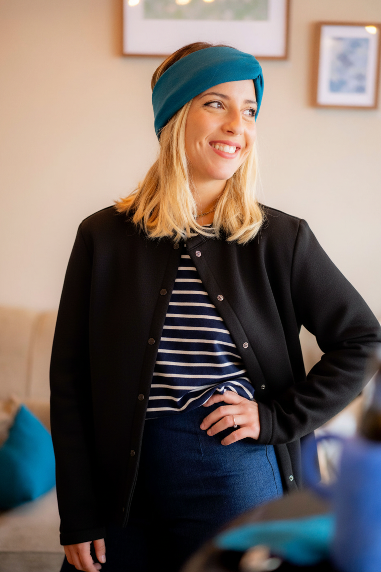 Dans sa version gilet, Robbie est plutôt simple à coudre. Si la maille vous fait peur, sachez que notre sweat est sans élasthanne, ce qui lui confère une bonne tenue et le rend facile à coudre.