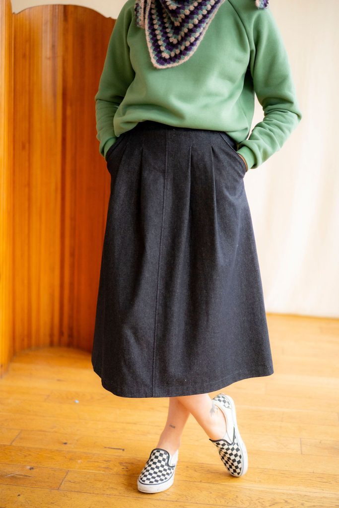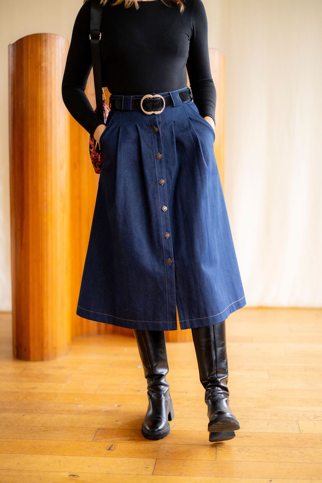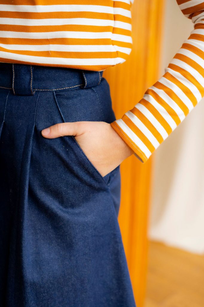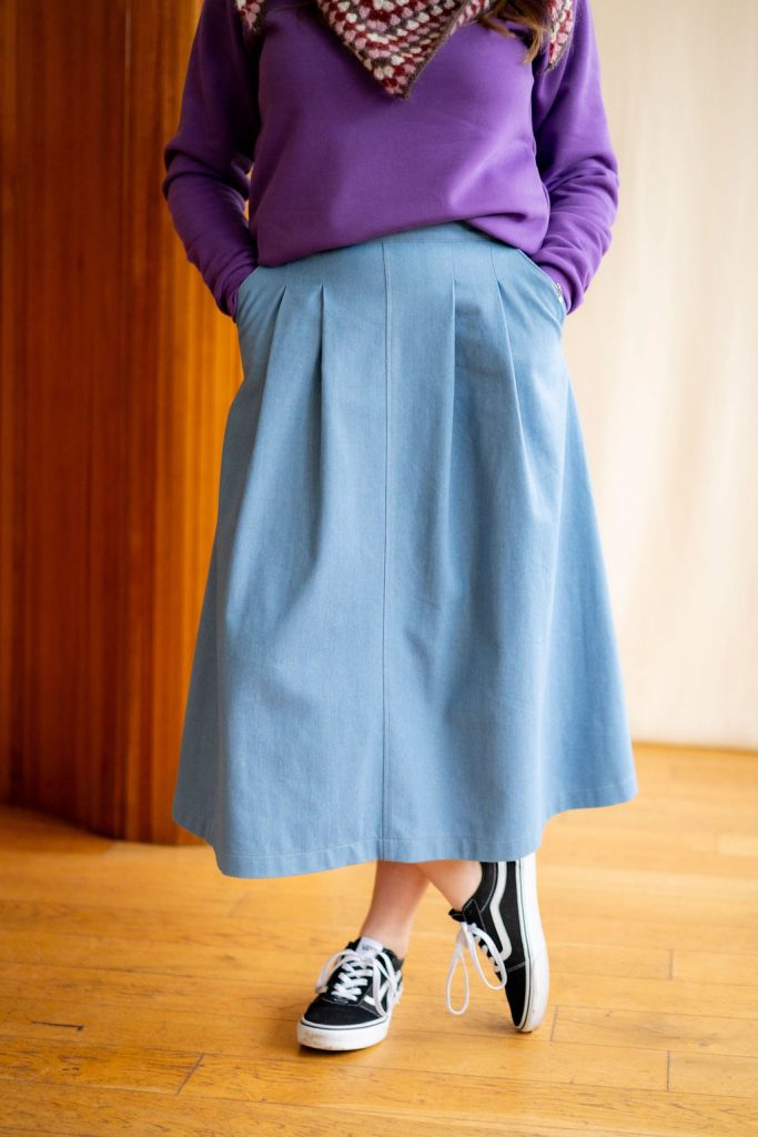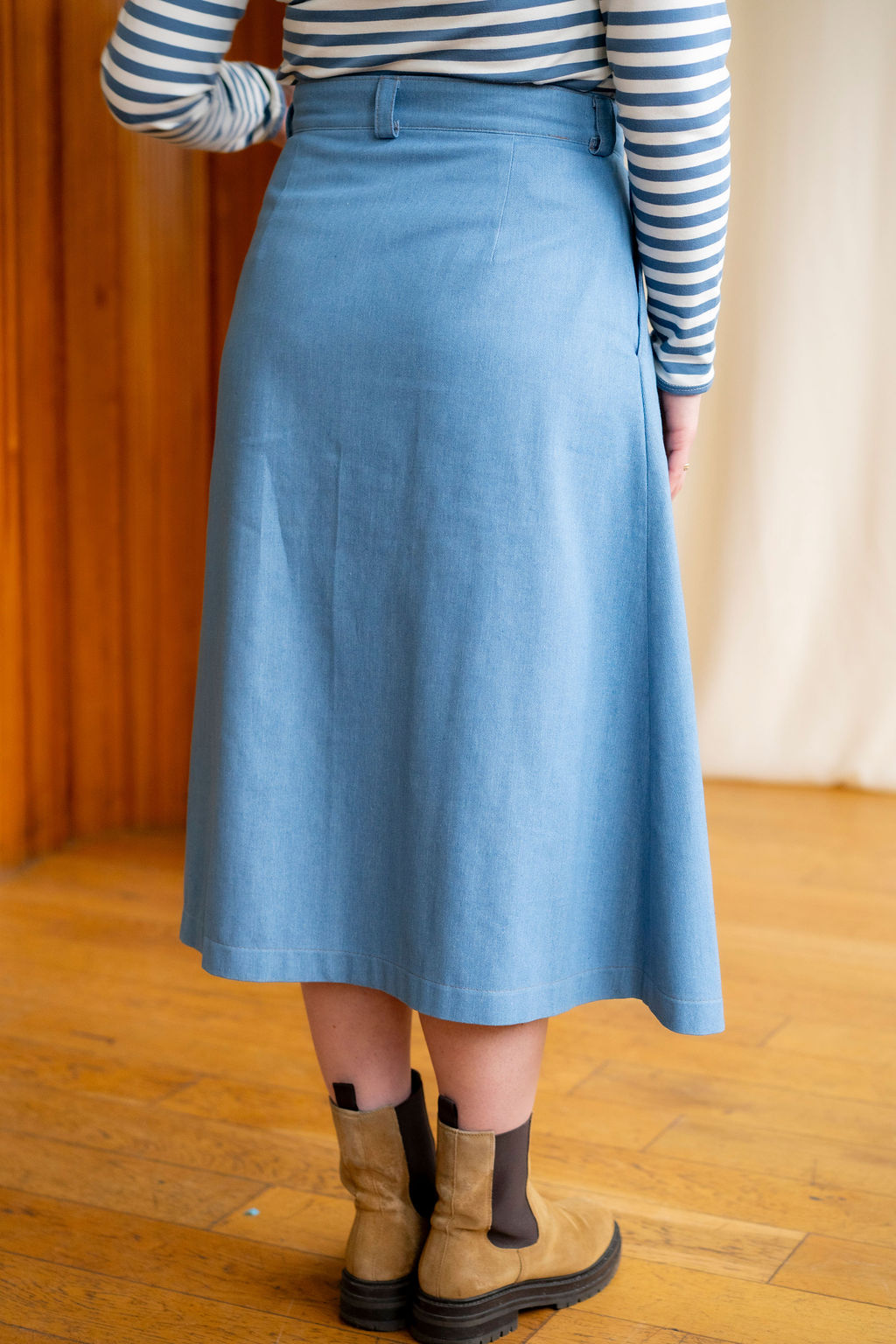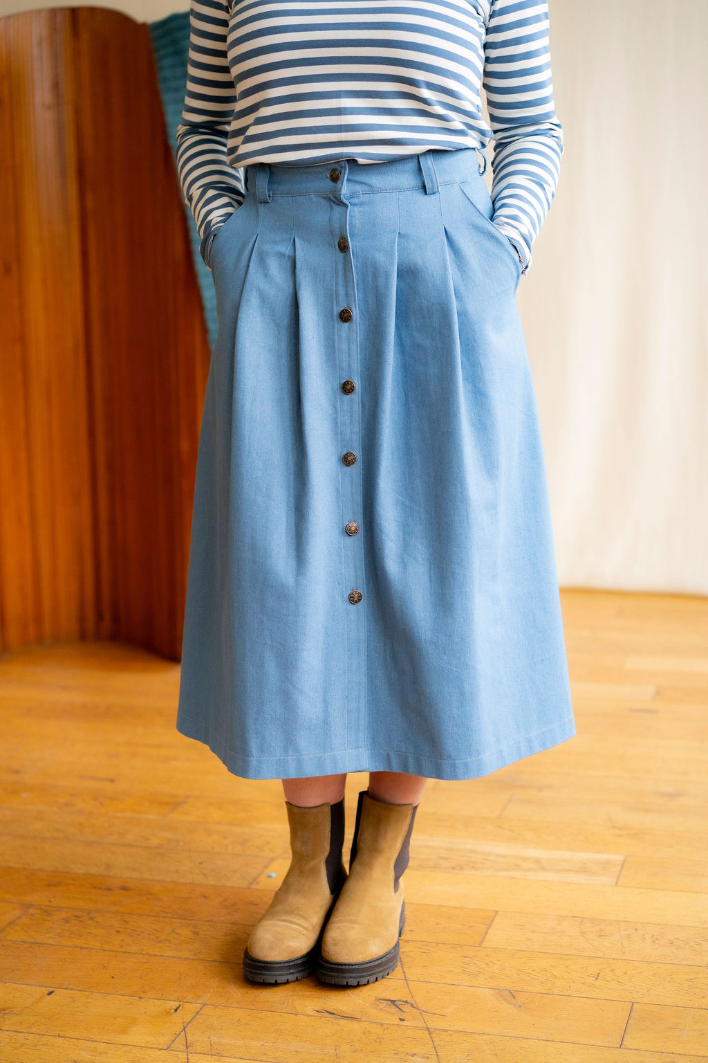 C’est une jupe qui devient vite un classique de garde-robe, et le denim 100 % coton sélectionné est agréable à travailler comme à porter.