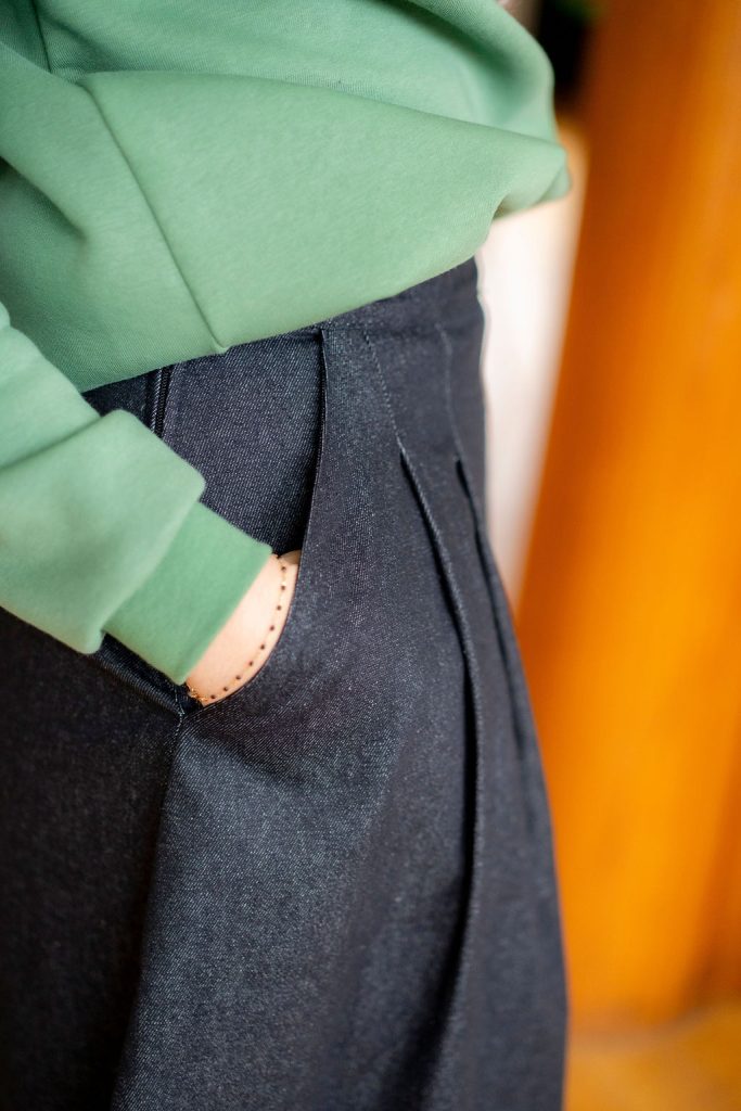 Le kit comprend un coupon de denim 100 % coton Oeko-Tex®, un zip coordonné, 7 boutons jeans, un patron détailléet un label Super Chouette.