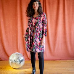 Avec ce kit vous réaliserez Rosie, dans la version de votre choix : une jolie blouse ou robe froncée (courte ou longue) manches trois-quarts, décolletée en V et boutonnée. La basque est volontairement peu froncée pour éviter tout effet trop volumineux.