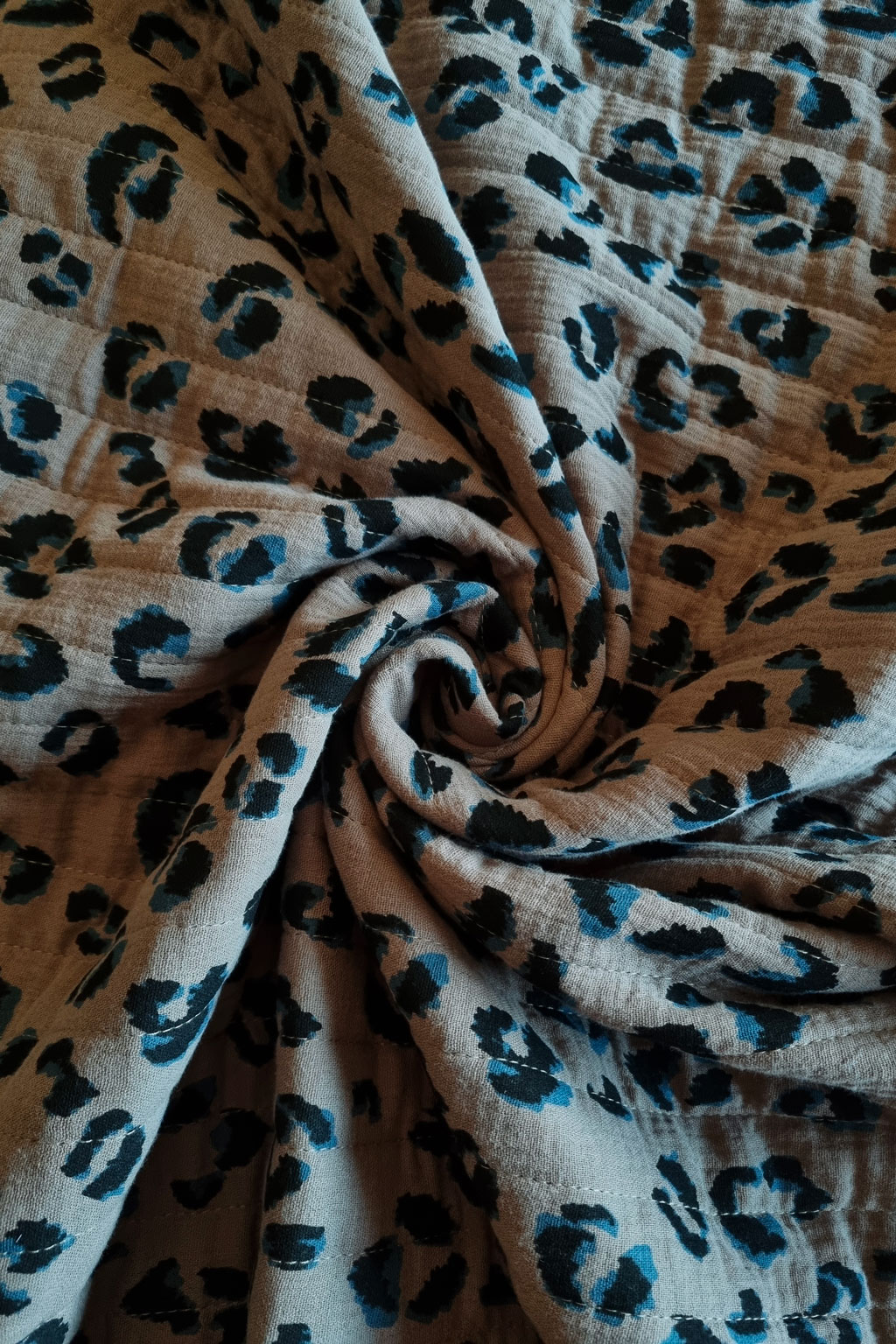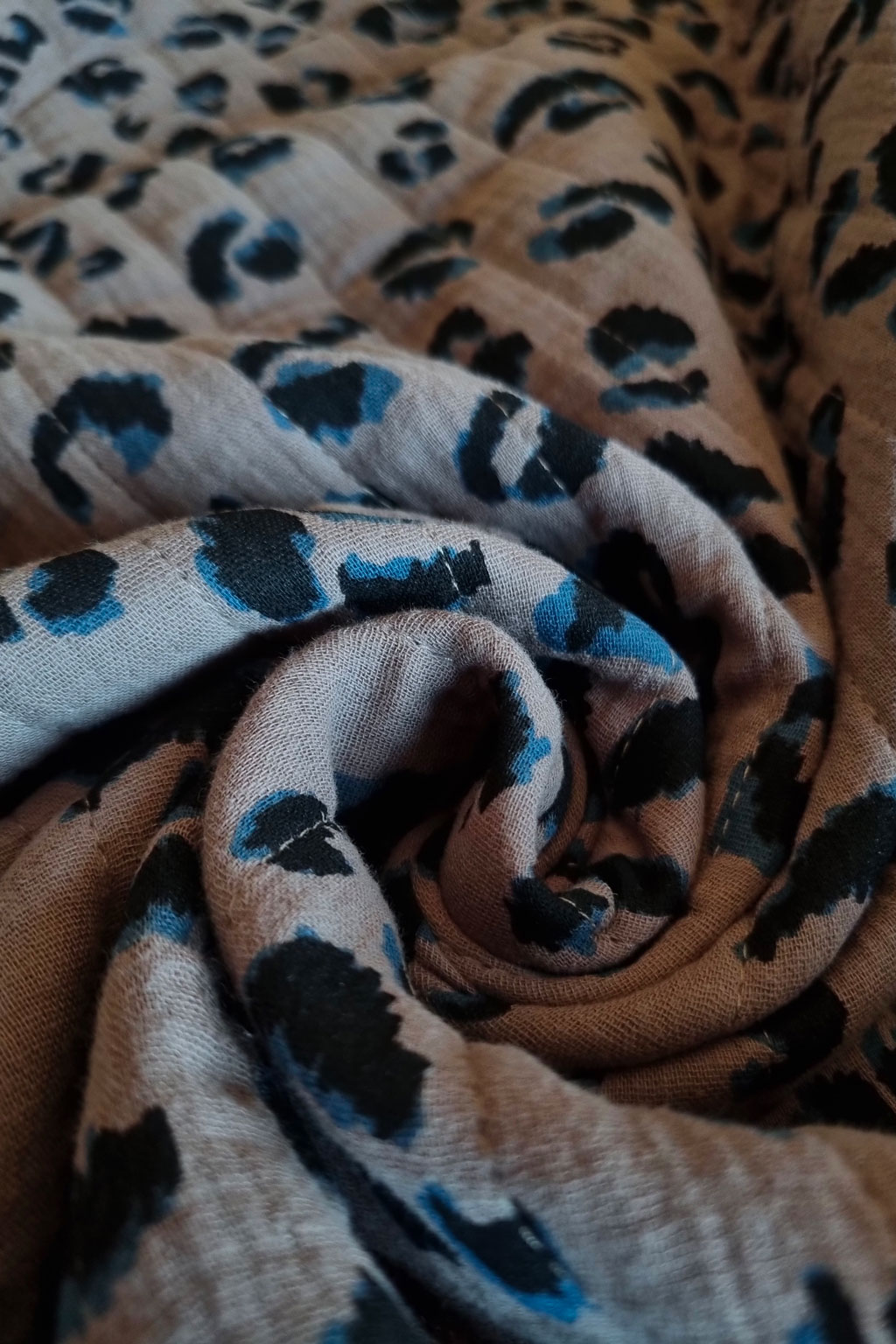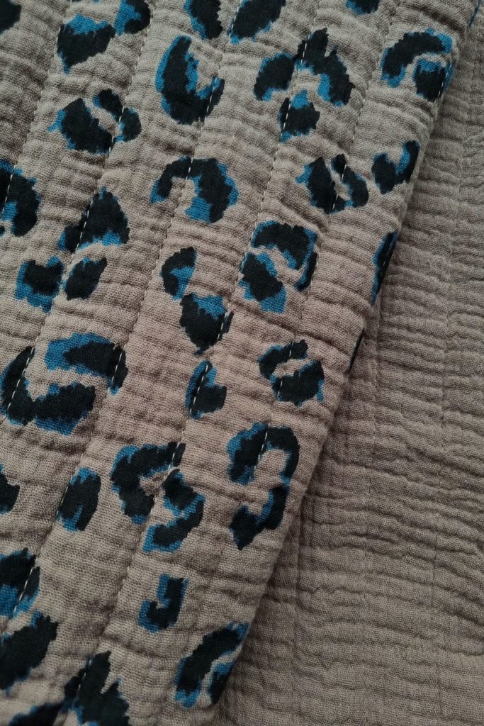 - un coupon de tissu matelassé double gaze 100% coton Oeko-Tex® pour les faces extérieures, 100% polyester pour la ouatine – 185 cm x 135 cm