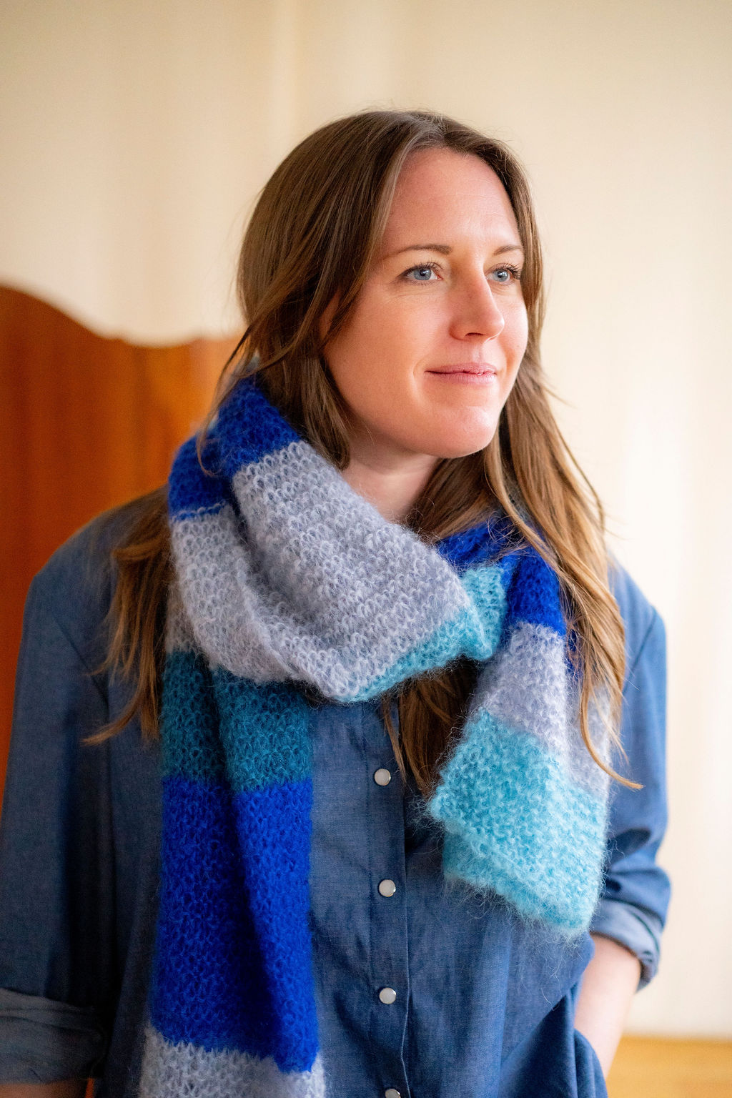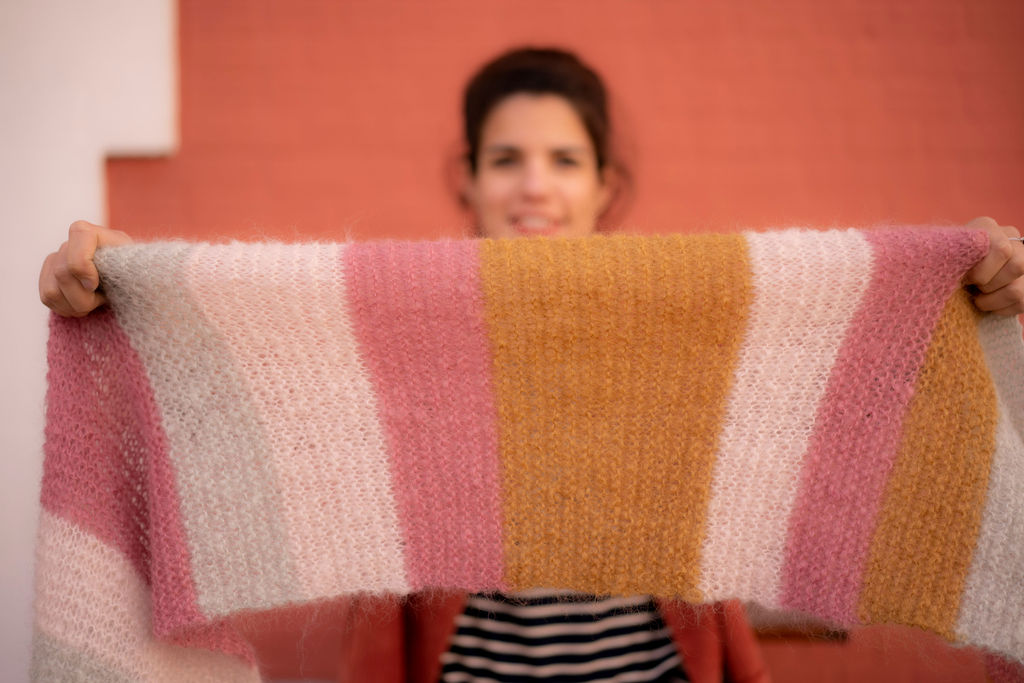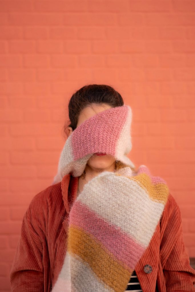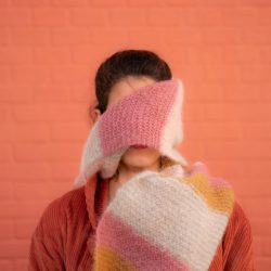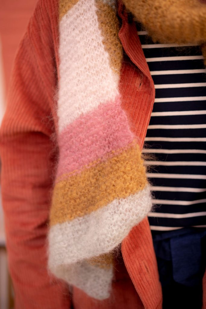 Ce kit vous permettra de réaliser une grande écharpe rayée easy au crochet ou au tricot !