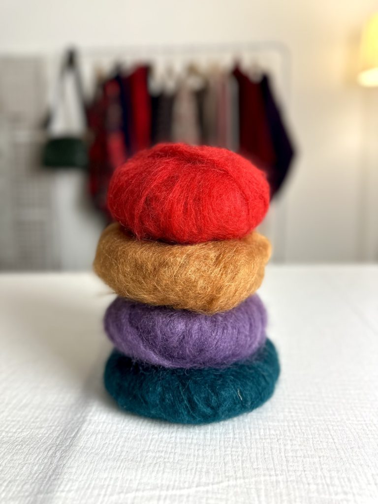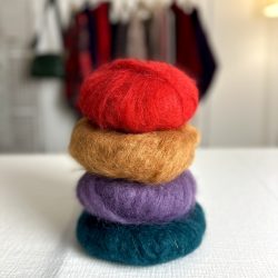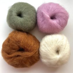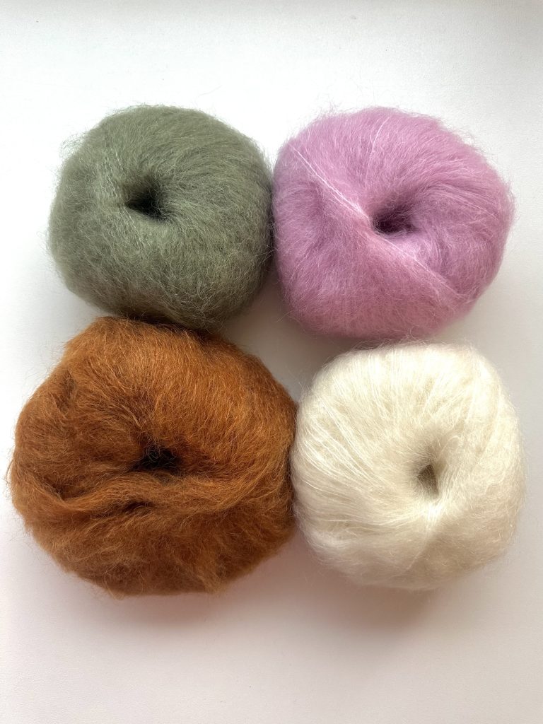 - 4 pelotes de fil mohair doux, léger et chaleureux à la fois – 78% Mohair – 13% Polyamide – 9% Merino – 50g – 140m
