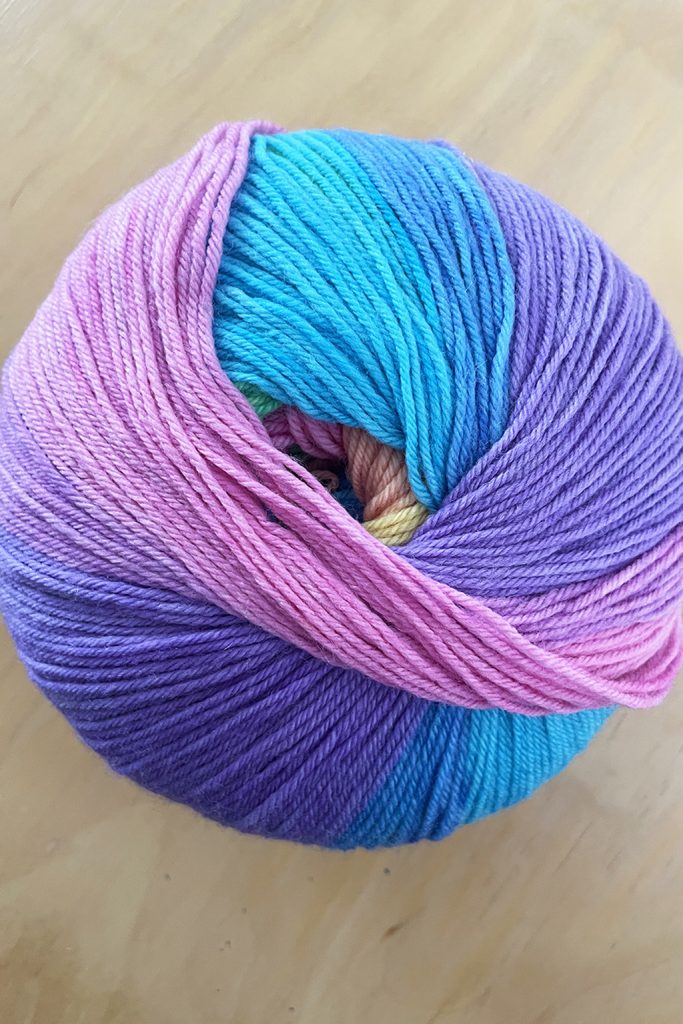 Nous avons choisi un fil dont les couleurs évoluent progressivement en un dégradé arc-en-ciel pastel ou intense au fur et à mesure de l’avancée de votre tricot. Pour réaliser cette version, vous n’aurez qu’à suivre le tutoriel des chaussettes rayées fourni dans ce kit, sans vous soucier du changement de fil, easy !