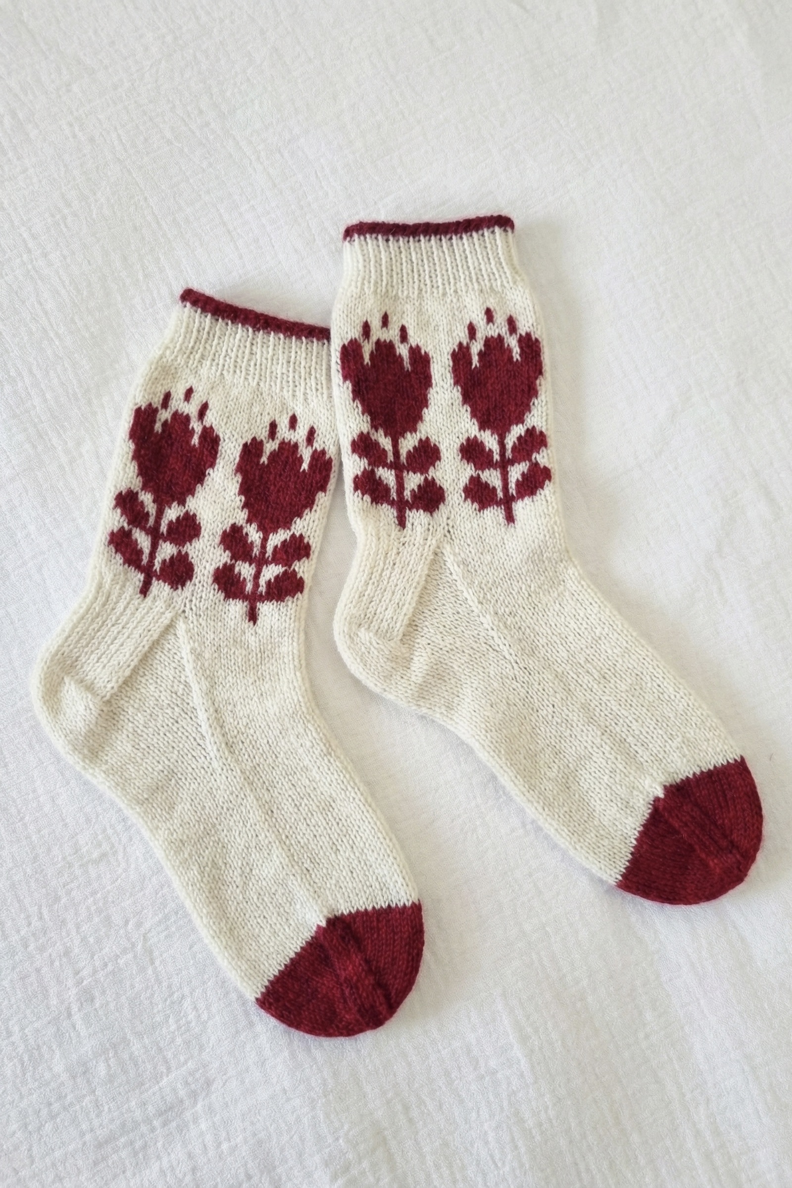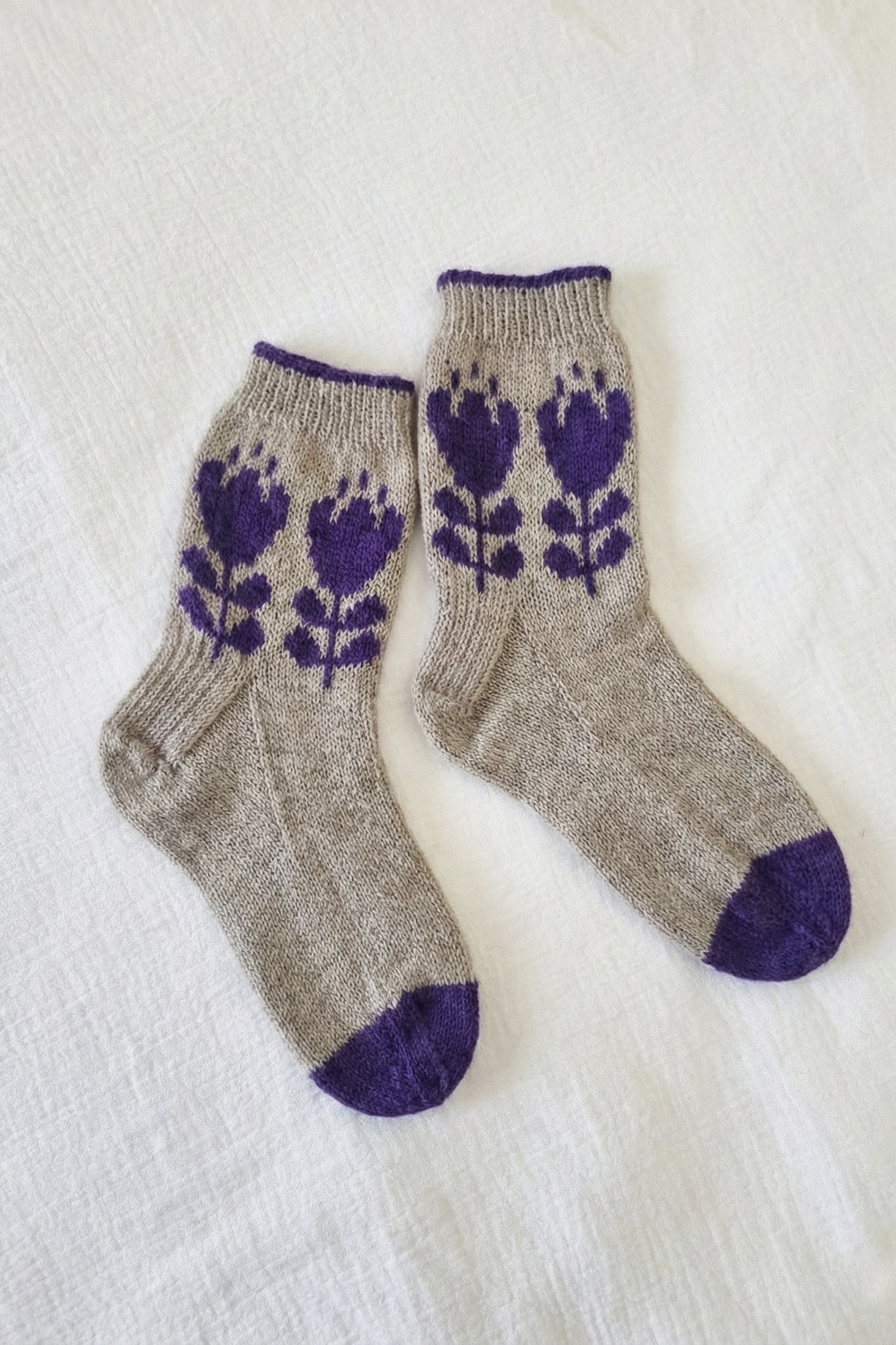 Tricotez votre paire de chaussettes fleuries en jacquard Crocus ! Modèle inédit créé par la talentueuse Emma Ducher, designer tricot à Lyon, pour Super Chouette. Nous avions une envie furieuse de chaussettes jacquard, mais avec un motif floral pour appeler le printemps, et Emma a comblé notre envie avec ce modèle original.