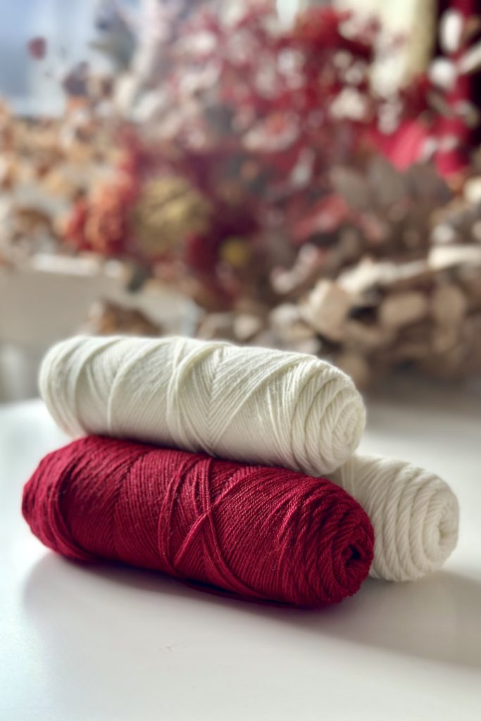 - 3 pelotes assorties d’un fil spécial chaussettes 75% laine 25% polyamide – 50g 210 m
