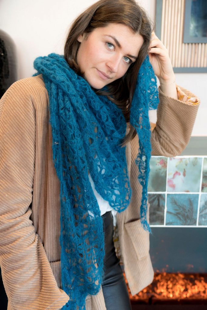 - l’écharpe Jardin d’Hiver, une écharpe géante dans laquelle il fera bon s’emmitoufler ou encore nos pointes Janis ou la pointe Peony.