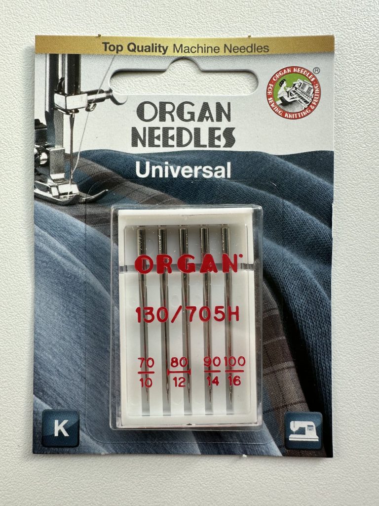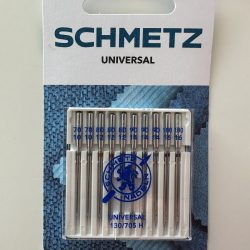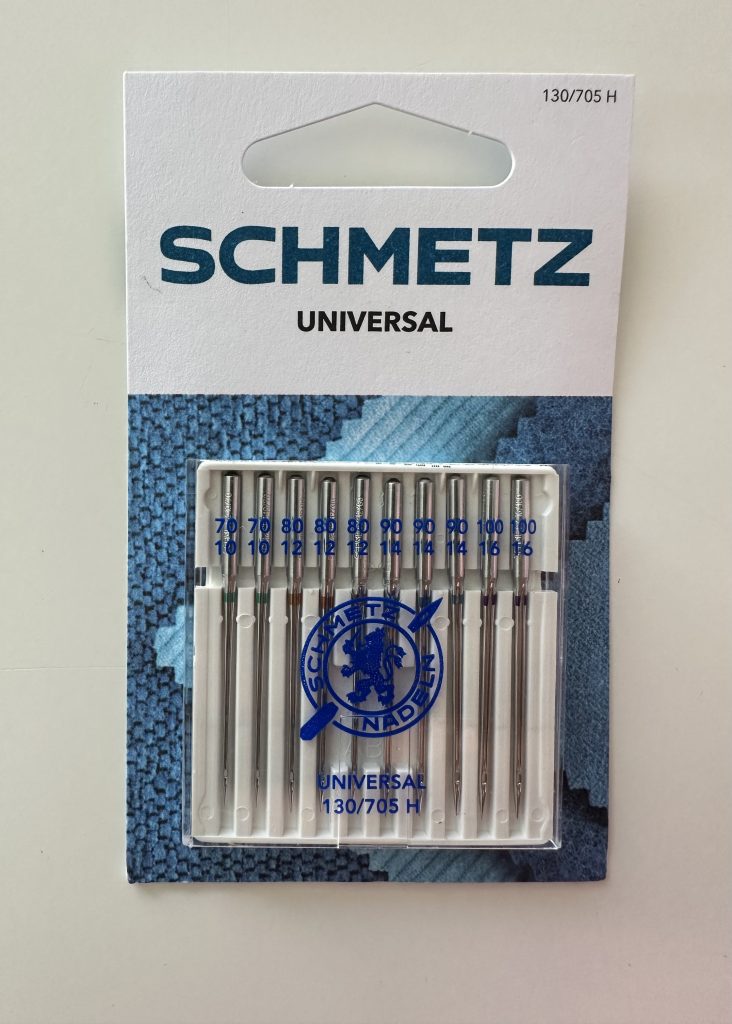 - L’assortiment d’aiguilles universelles : boîte de 5 aiguilles machine à coudre universelles. Leur pointe est légèrement arrondie pour convenir à toutes sortes de tissus ou matières. 1 Aiguille 70 pour les tissus fins (viscose fine, soie, baptiste…), 1 aiguille 80 et 2 aiguilles 90 pour la majorité des tissus et 1 aiguille 100 pour les tissus épais (jeans, toile demi-natté…).
