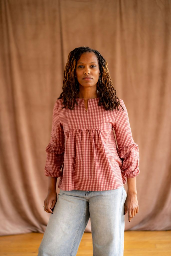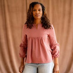 Les manches trois-quart en forme ballon, le plastron, le col tunisien et les fronces sous la poitrine sont autant de détails qui font de la blouse Emmanuelle un incontournable de votre vestiaire et qui fait l’unanimité chez Super Chouette et chez nos clientes.