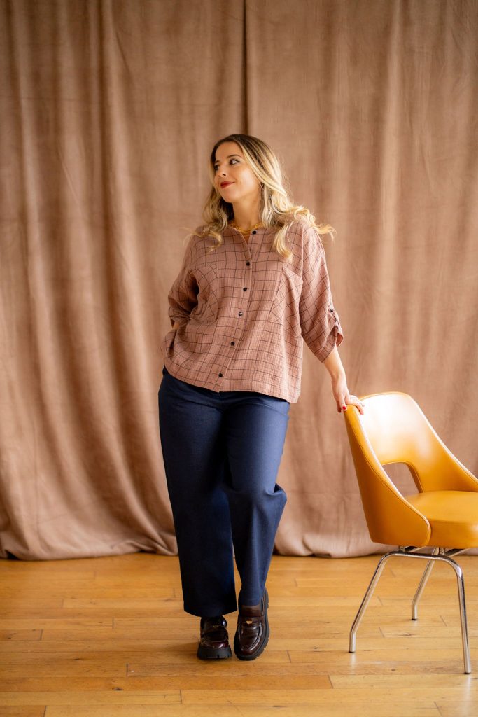 A la une On fire – Kit Couture – Blouse Simone carreaux praliné (avec ou sans PATRON)
