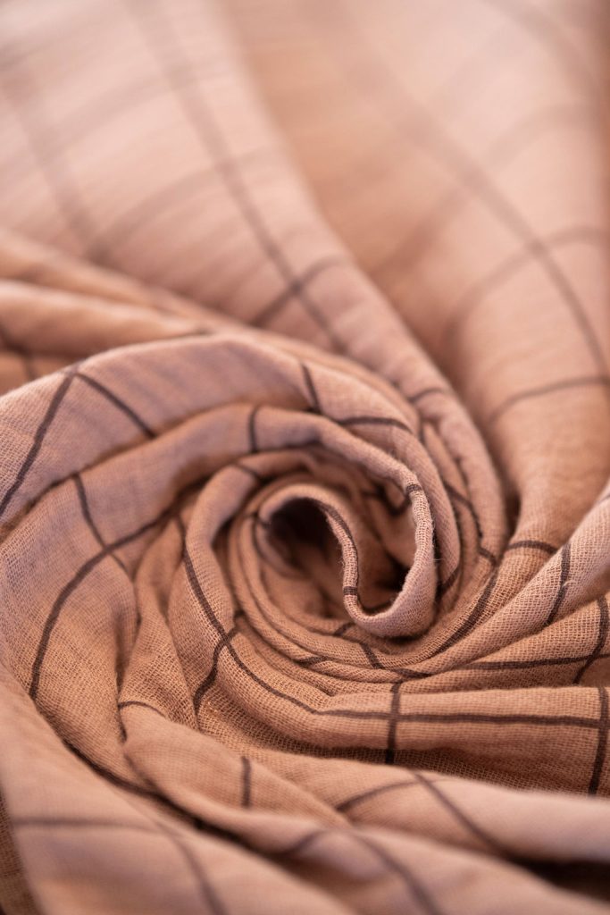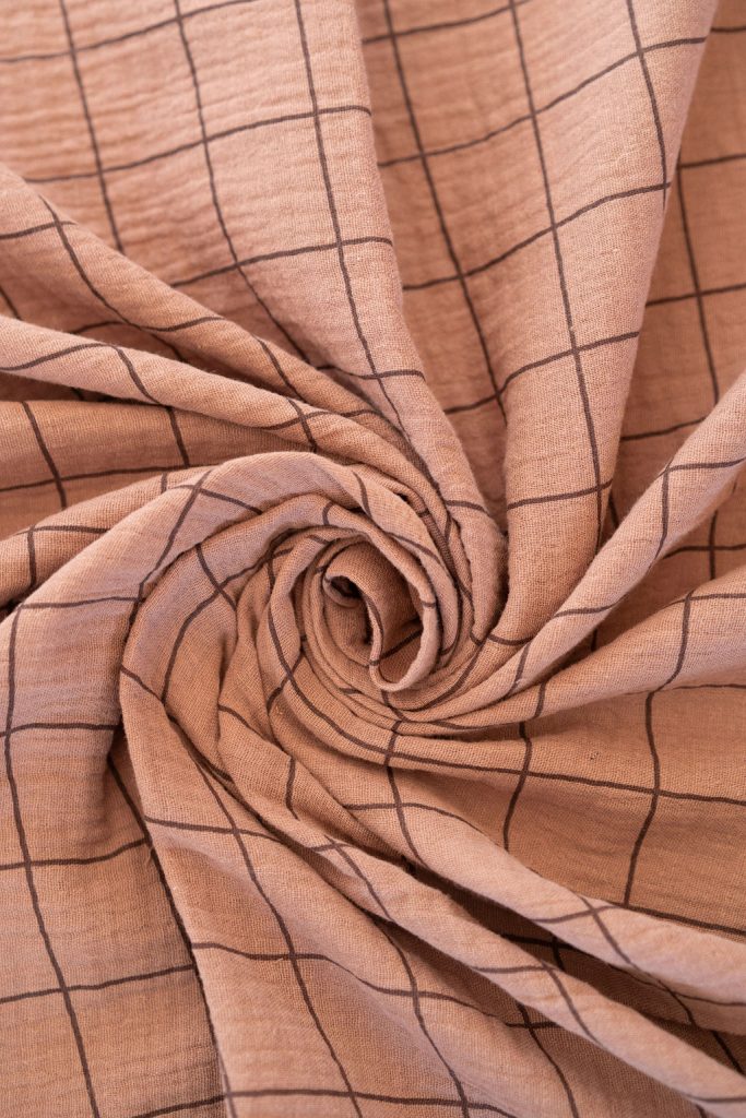 - 1 coupon de double-gaze à carreaux praliné, 155 cm x 135 cm – 100% coton Oeko-Tex®