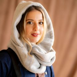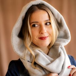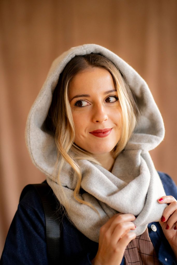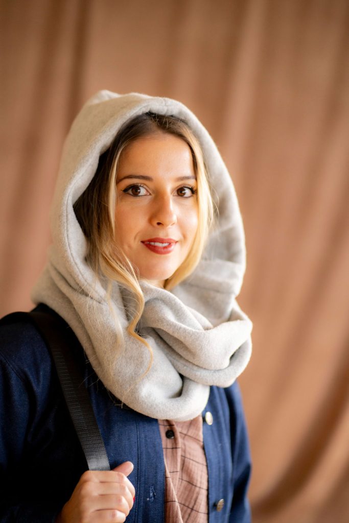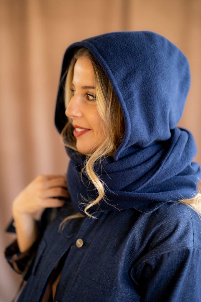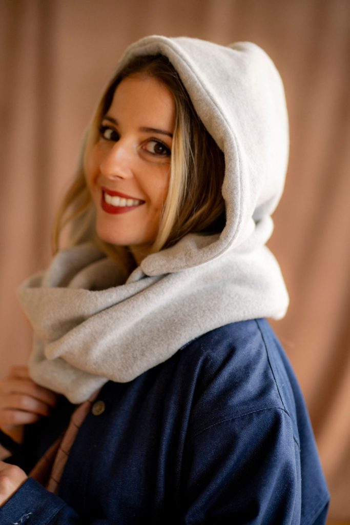 La capuche Aliocha, protège la tête et forme un col double autour du cou, assurant chaleur et douceur quand les températures exigent de se couvrir. C’est l’alternative pratique au combo bonnet/écharpe, entre autre pour les personnes ne supportant pas la laine, et avec style !