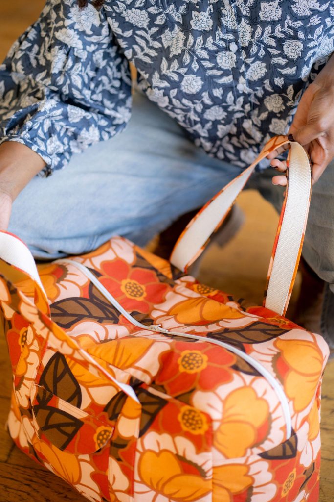 Ce sac week-end comporte un certain nombre de pièces et demande un peu de temps pour sa réalisation, mais le montage n’est pas compliqué. Seules les épaisseurs à passer peuvent faire peur, mais avec la bonne aiguille pour votre machine et en prenant le temps au moment de les passer, cela se passera sans encombre. Vous aurez également à poser des zips.