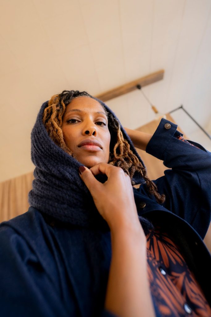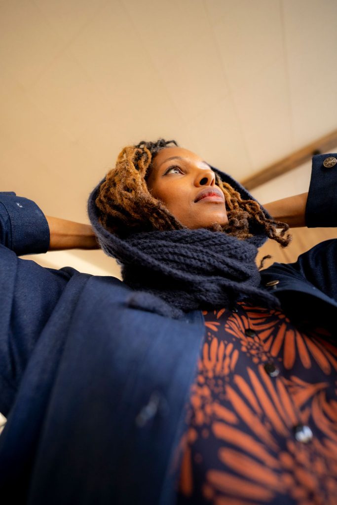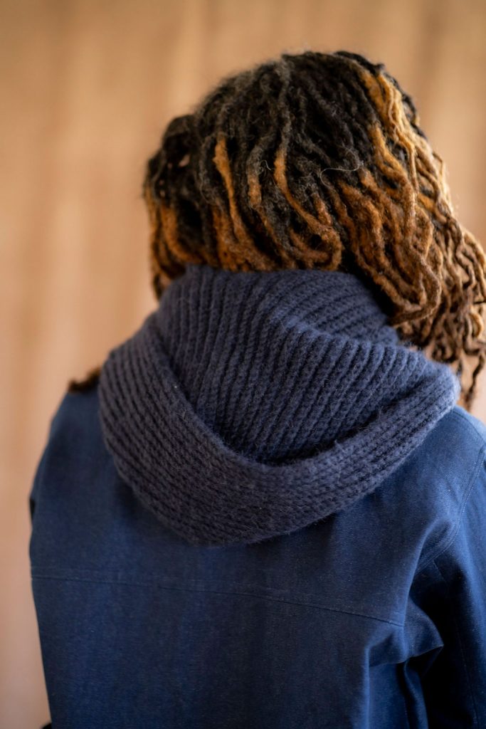 Avec ce kit, vous pourrez réaliser l’écharpe capuche Solveig. Une pièce dont on avait envie depuis très longtemps, mi-écharpe mi capuche, c’est LA pièce qu’il vous faut cet hiver. Remontée sur la tête c’est une véritable cagoule, le style en plus ; simplement enroulée et nouée autour du cou c’est une écharpe enveloppante et chaude. On passe en une seconde du mode cagoule au mode écharpe : ON ADORE.
