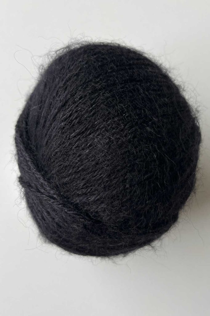 - OU 5 pelotes d’un fil doux, légèrement duveteux et soyeux, très agréable à porter et à travailler – 63% alpaga 23% mohair 7% laine 7% soie – 50 g 115 m pour les coloris purple, écureuil, noir et sable