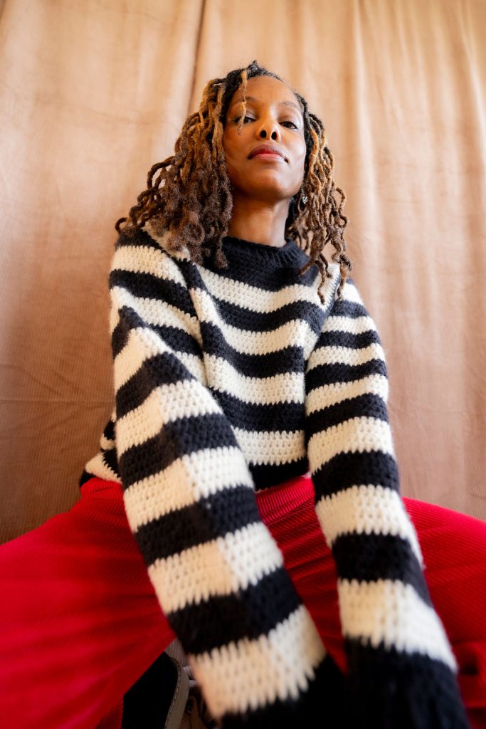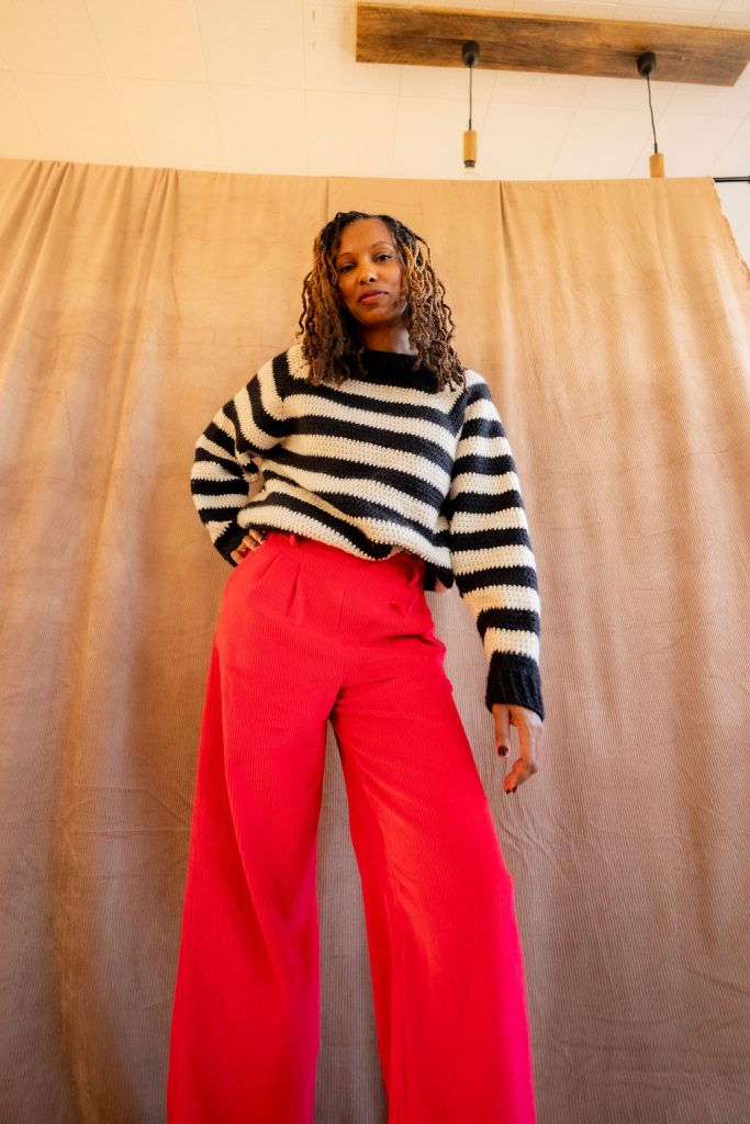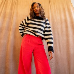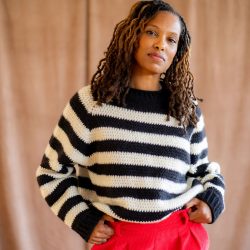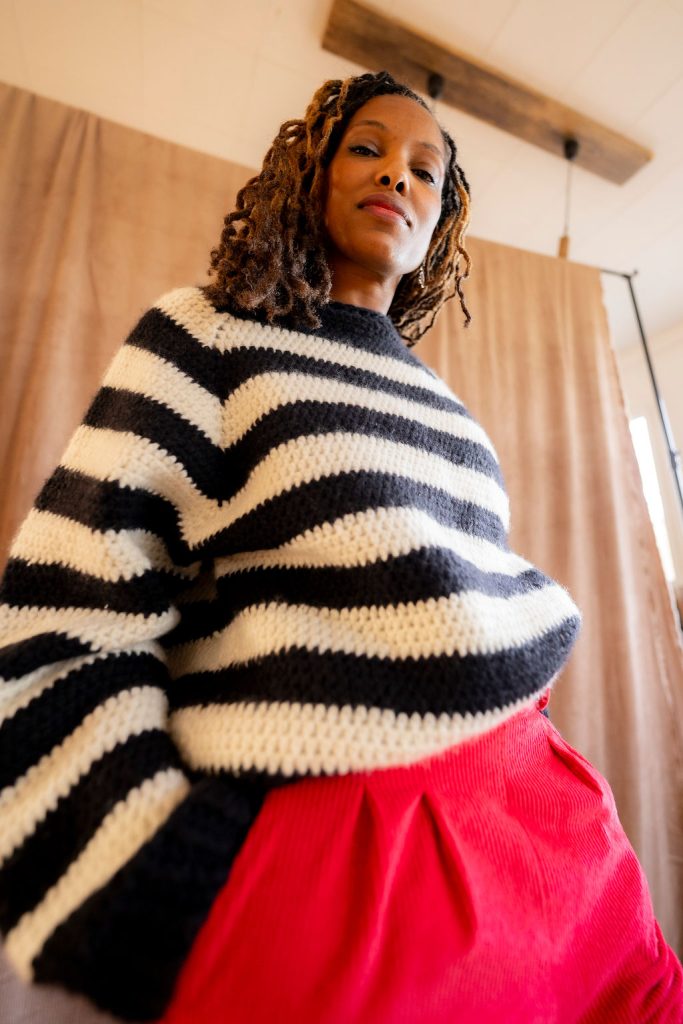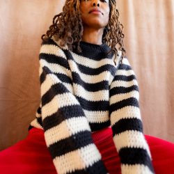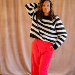 Avec ce kit, vous réaliserez le pull Julien, un pull rayé confortable, à encolure ronde, aux emmanchures amples et à la taille légèrement resserrée. C’est un pull plutôt court qui arrive mi-hanche.