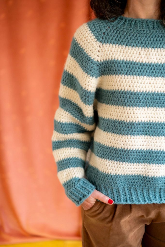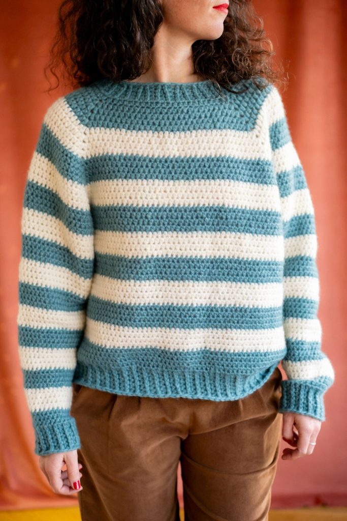 Si vous souhaitez faire ce pull en uni ou avec des rayures différentes, vous pouvez aussi acheter le tutoriel seul et des pelotes à l’unité