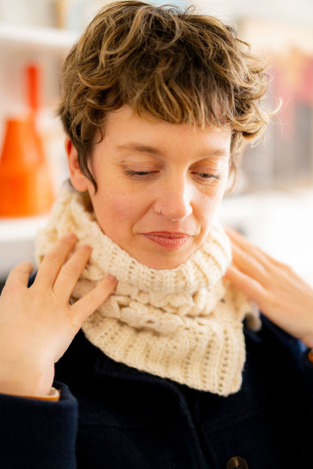 - Le col fleuri – 2 pelotes : un col tout doux en semis de fleurs printanières, un format qui change des snoods classiques et apporte une touche de pep’s à une tenue. Il est facile et s’assemble au fil de l’eau, en crochetant (pas d’assemblage fastidieux en fin de d’ouvrage). Le résultat est délicat et super mignon, parfait dans ce fil ultra doux : se lover dans un semis de fleur, un rêve non ?