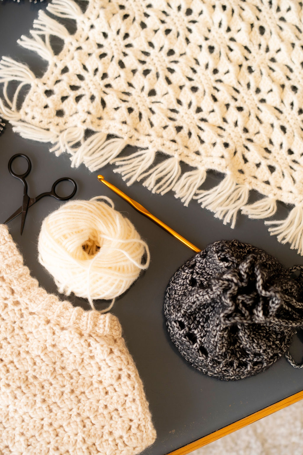 - Crochet : des petits projets super ludiques pour s’essayer sur de nouvelles formes, des points amusants ou des diagrammes stimulants. Rien de très compliqué mais il faut savoir lire un diagramme et maîtriser les points de base pour le col fleurs, le col Marie, le foulard et la pointe Suzu, l’aumônière et la trousse bicolore.