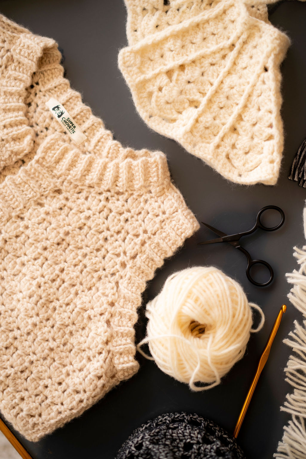 En crochet, en tutoriel à part qui se trouve dans les kits XL et Pelotes :