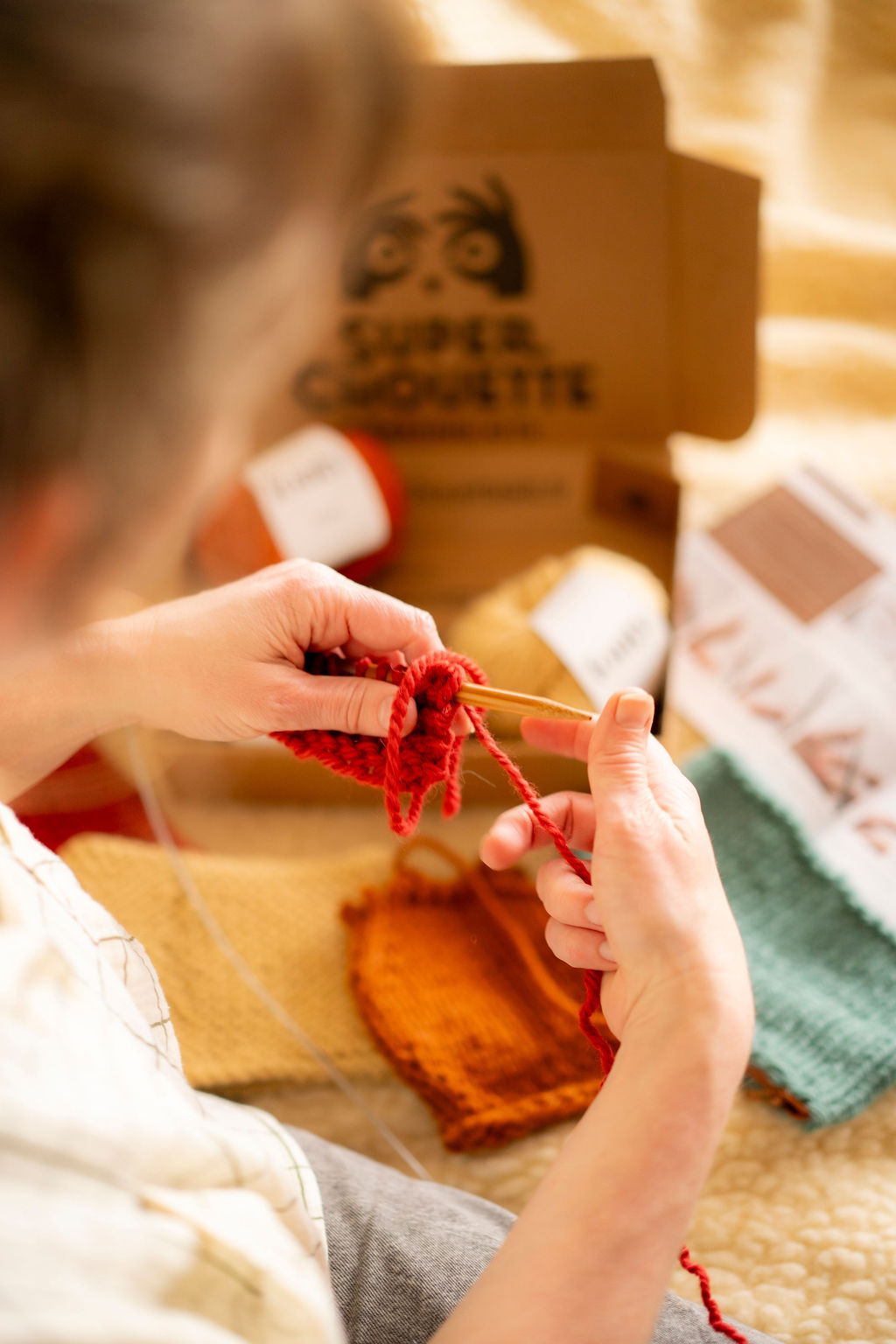 Ce kit est destiné aux débutant·e·s , à celles et ceux qui désirent apprendre le tricot en démarrant à zéro.