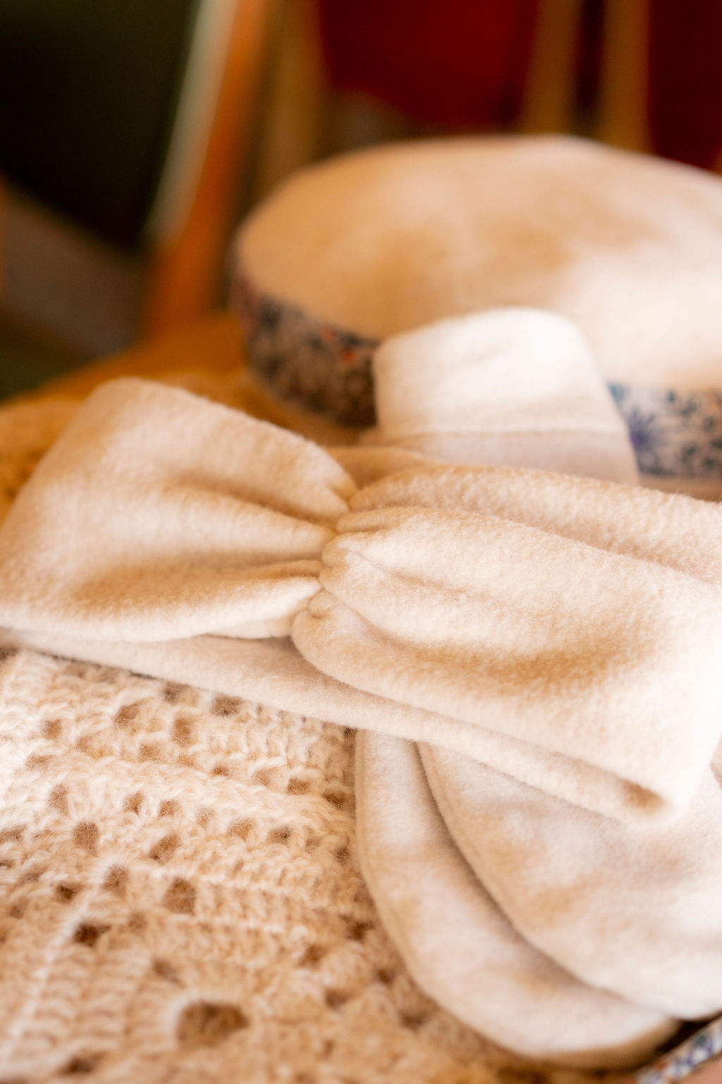 - Le bandeau froncé : pour accompagner les moufles en polaire… le bandeau évidemment ! Vous pourrez réaliser un ensemble d’hiver aussi féminin qu’efficace pour ne pas vous refroidir. Dimensions : environ 25 x 11 cm à plat.