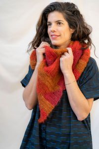 Le blocage est une technique, combinant lavage et séchage à plat, qui permet de donner une forme définitive à votre ouvrage. La laine possède une mémoire de forme : bloquer la laine, c’est lui redonner la mémoire… Car en tricotant, le fil est tordu par les aiguilles et se trouve sous tension, il est resserré. Le fait de tremper la laine aide la fibre à retrouver ses caractéristiques : souplesse, fluidité, élasticité. Ensuite, le séchage à plat et sous maintien donne la forme finale et les dimensions voulues à votre ouvrage. Par exemple, un châle comme la pointe Honoré si vaporeuse, ou la  pointe Peony très structurée, trouvent leur forme parfaite grâce au blocage, une fois pour toutes.
